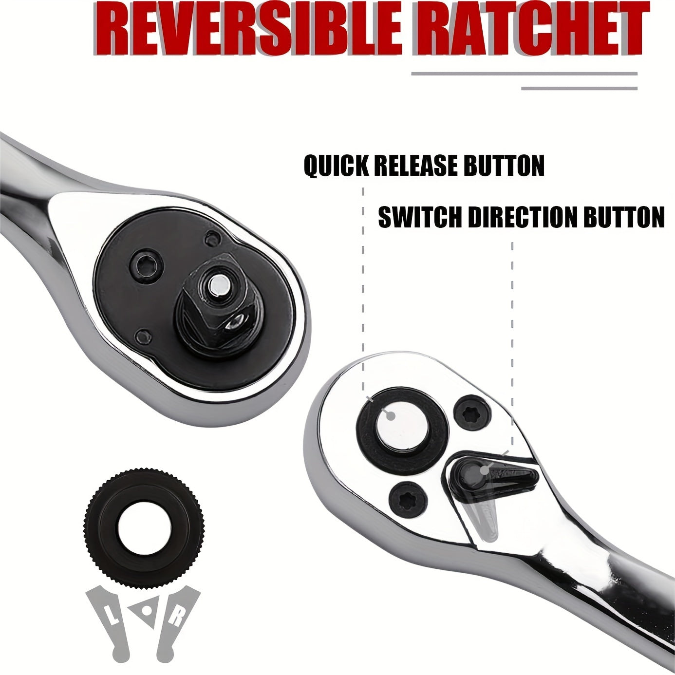 46pcs Car Repair Tool Kit, 1/4 Inch Ratchet Wrench Set with Versatile Bit Socket Set And Extension Bar, Combo Tools Kit, for Car, Motorcycle & Bicycle Repair