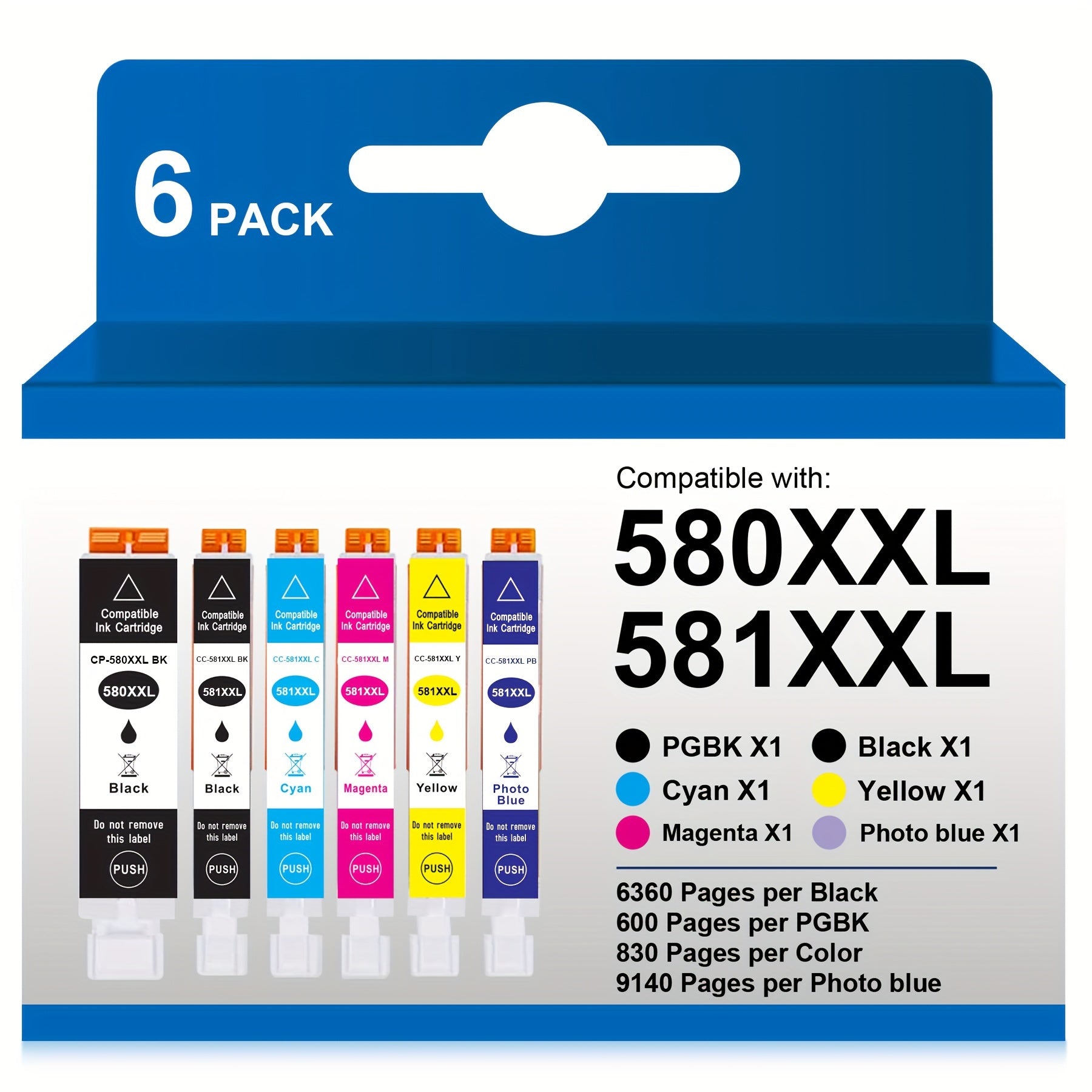5/6Packs Ink Cartridges Compatible with Canon 580XXL 581XXL Printer Cartridges PGI-580XXL CLI-581XXL for Canon Pixma TR8550 TS705 TS6350 TS6350a TS705a TS6351 TS6250 TS6150 TS9550 TS6300 TS6255