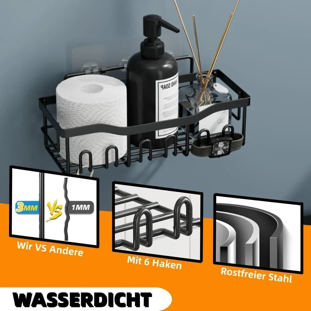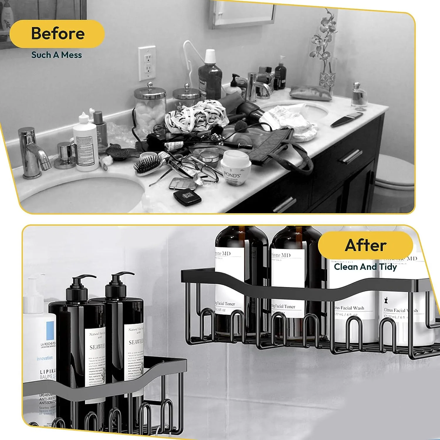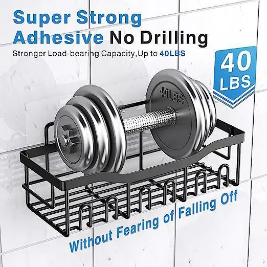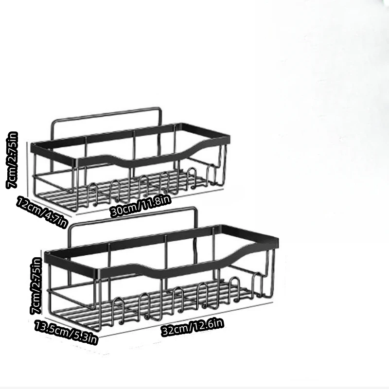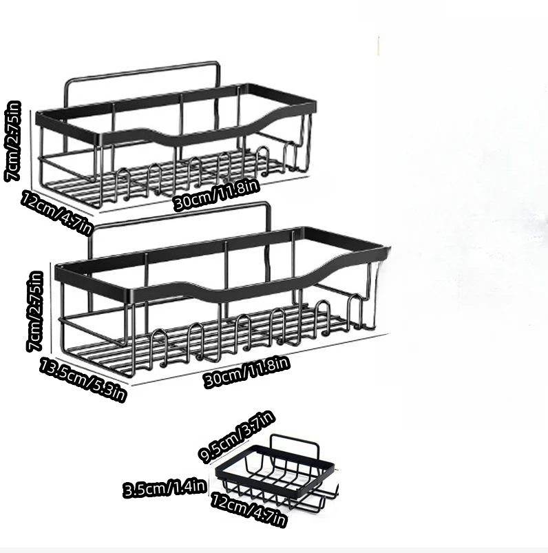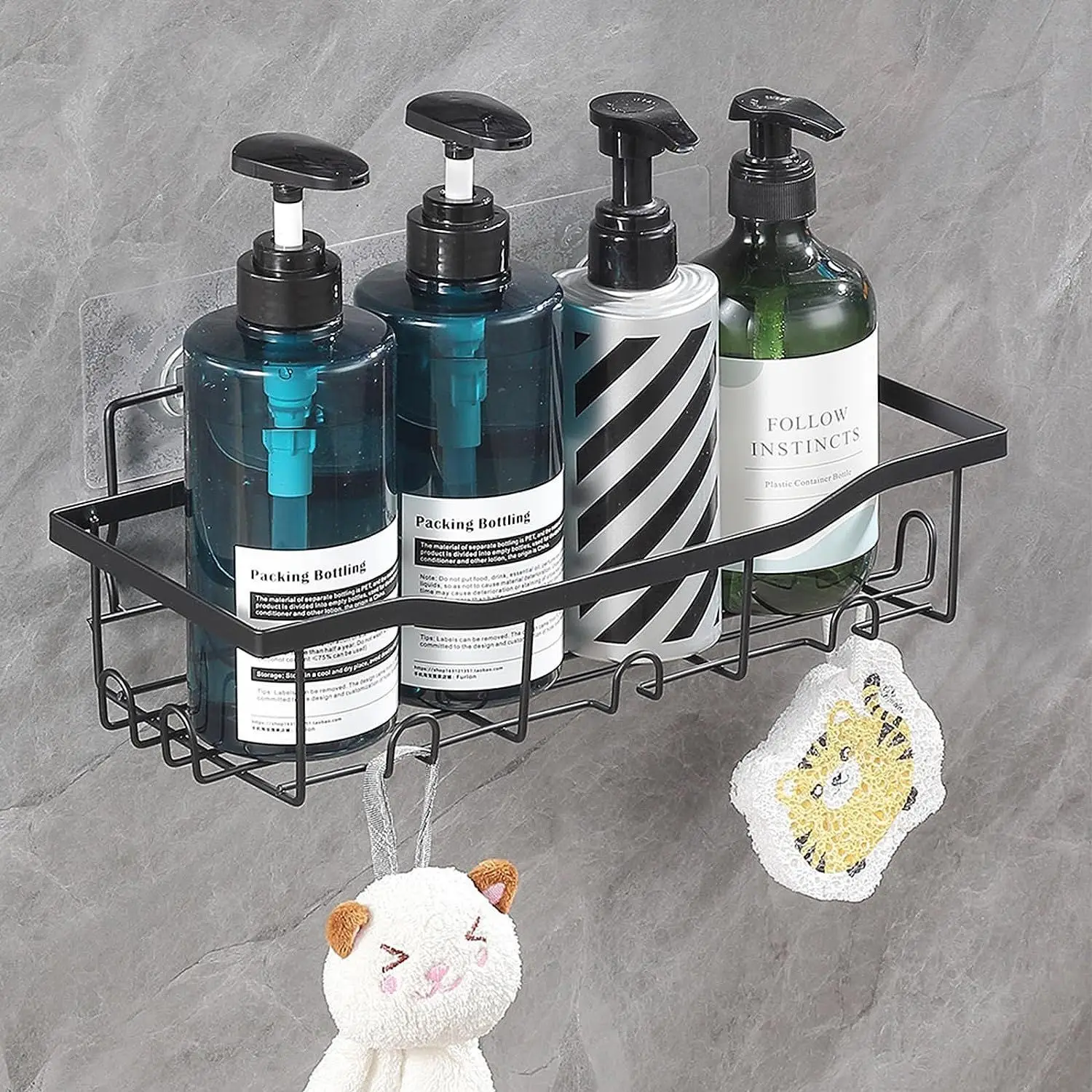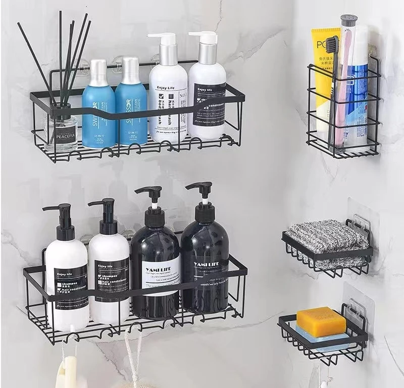 5-piece set non perforated wall mounted black iron bathroom kitchen shower shelves |