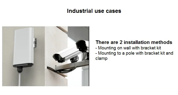 IP65 dust and waterproof; 6KV Lightning protection; Supports wall-mounted and pole-mounted installation; -20 - 60°C operation temperature, support preheating mechanism in low temperature environment.