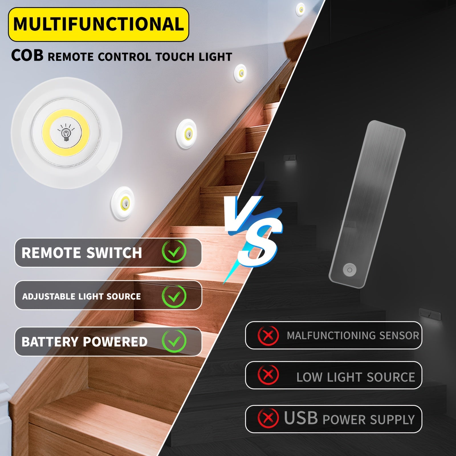 6pcs Smart Wireless LED Under-Cabinet Lights COB Night Light With Remote Control - Perfect For Wardrobe, Kitchen & More!