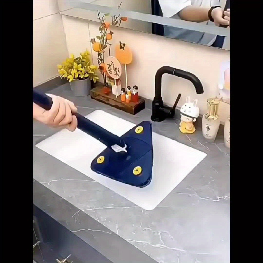 6pcs Triangle Wet and Dry Mop Set with 5 Microfiber Pads, 360° Rotating Stainless Steel Handle, Multi-Functional for Bathroom, Kitchen, Living Room - Ideal for Bathtub, Tile, Wall, and Glass Cleaning