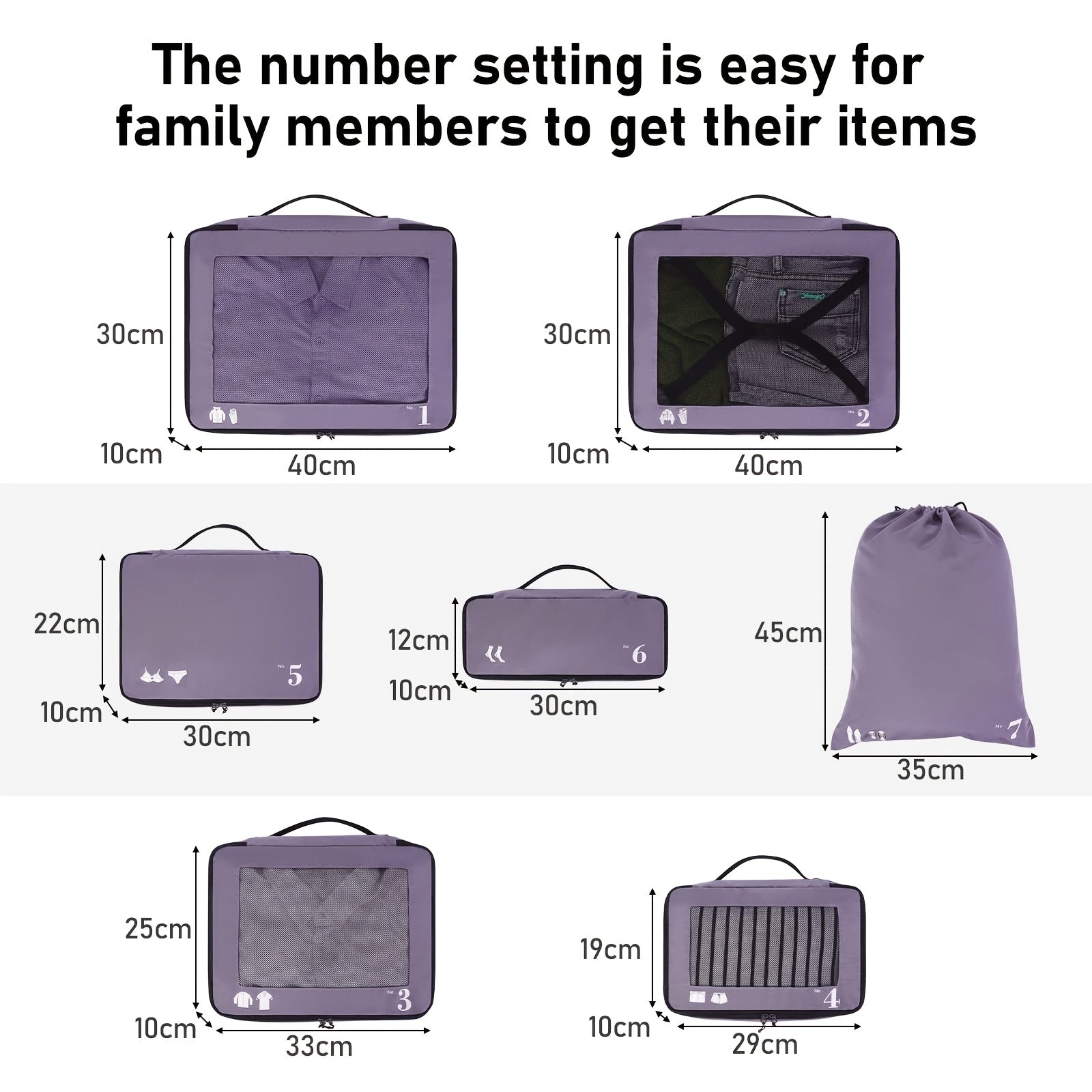 7pcs All-in-One Luggage Organizer Set with Shoe Bag & Laundry Pouch - Heavy-Duty Travel Packing Cubes, Zippered Compartments, Space-Saving Design for Suitcase, Backpack, Business Trip, Vacation, Camping - Machine Washable, Re