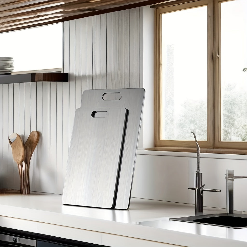 A Set of 1 Mini/Small/Medium/Large Stainless Steel Cutting Boards, Suitable for Home Kitchens And Convenient for Camping. These Durable And Corrosion-Resistant Boards Are Useful Kitchen Tools And Accessories.