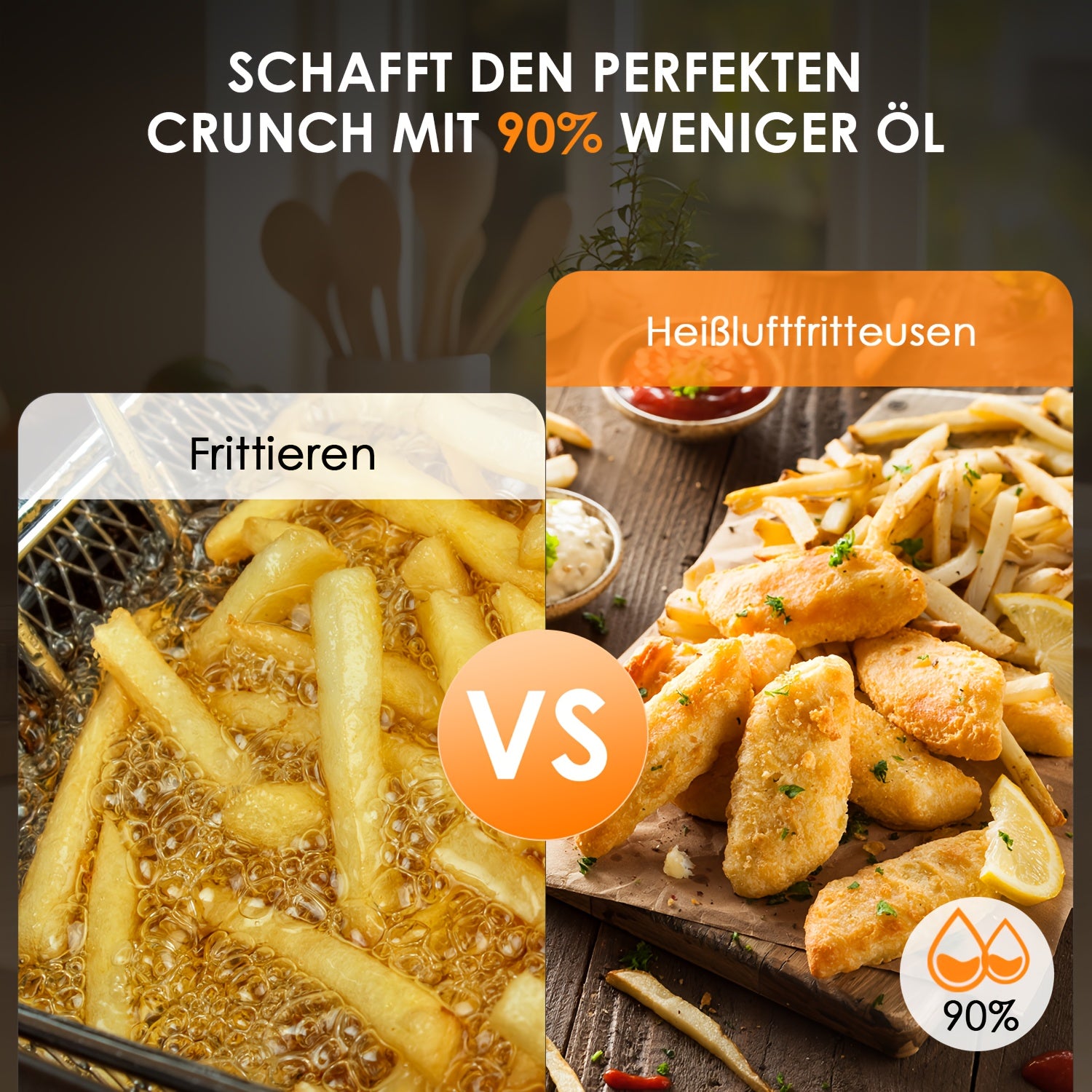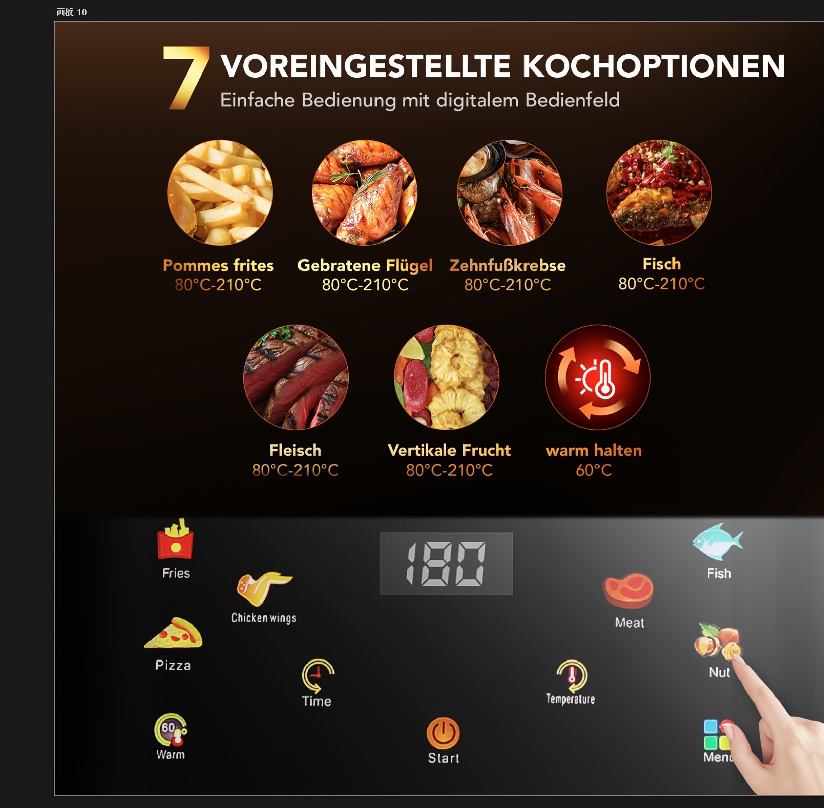 Air Fryer 6.5L 9L 10.5L Oilless 1800W Large Capacity Oven Air Fryers Healthy Cooker With 10 Preset, Visual Cooking Window, Non-Stick Basket, Dishwasher Safe