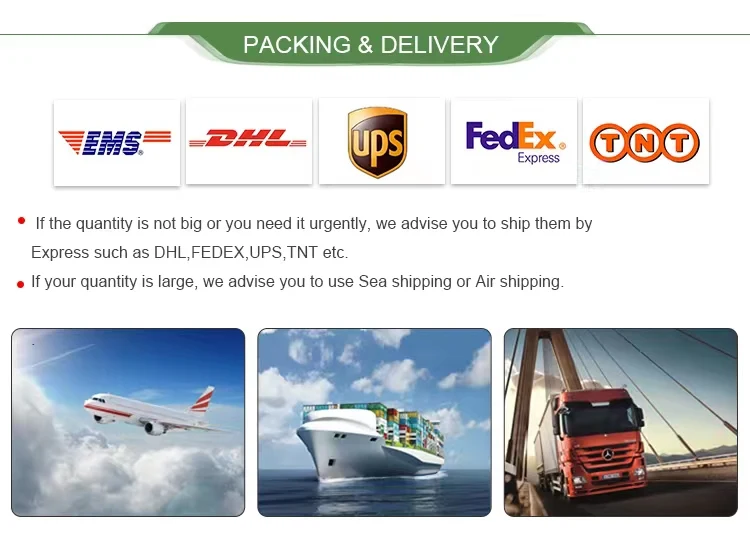 For small trial order, we ship goods with door to door(FedEx, DHL, UPS, TNT, etc)