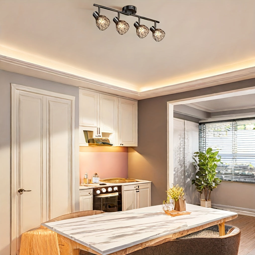 AMANSOUR 4-Bulb LED Ceiling Spotlight - Retro Black Metal Semi-Flush Mount Ceiling Light with Polished Finish, E14 Base, No Bulbs Included, Ideal for Kitchen, Living Room, Bedroom, Office & Hotel Decor, Ceiling Lights for Hom