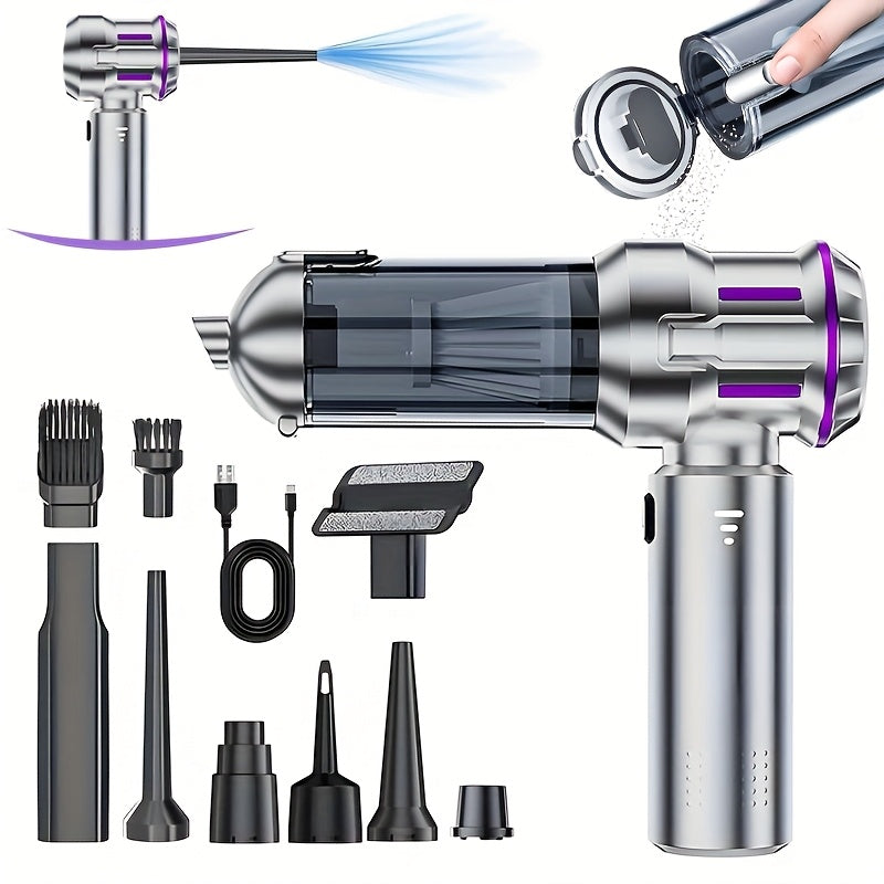 Mantenha o seu espaço sempre limpo com The New Wireless Vacuum Cleaner, o aspirador portátil sem fios que combina funções de sucção e sopro para uma limpeza completa.