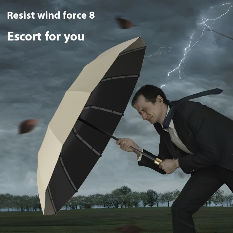Automatic Open/Close Heavy-Duty 12-Rib Windproof Umbrella with Solid Wood Handle (Birch/Beech) - Large Canopy All-Weather Windproof & Folding Umbrella for Men &, Business, Travel - Automatic Solid Color (Maroon/Black/Navy