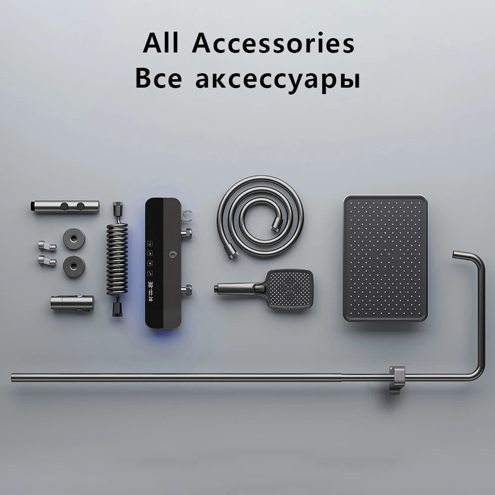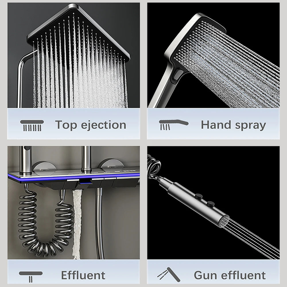 Bathroom Smart Shower System Set Bathtub Rainfall Digital Display Temperature Mixer Rain Shower Faucet Sets with Atmosphere Lamp