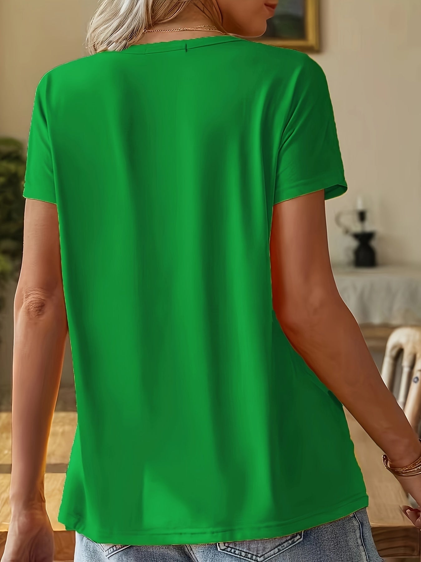 Bee Print Crew Neck T-Shirt, Casual Short Sleeve Top For Spring & Summer, Women's Clothing