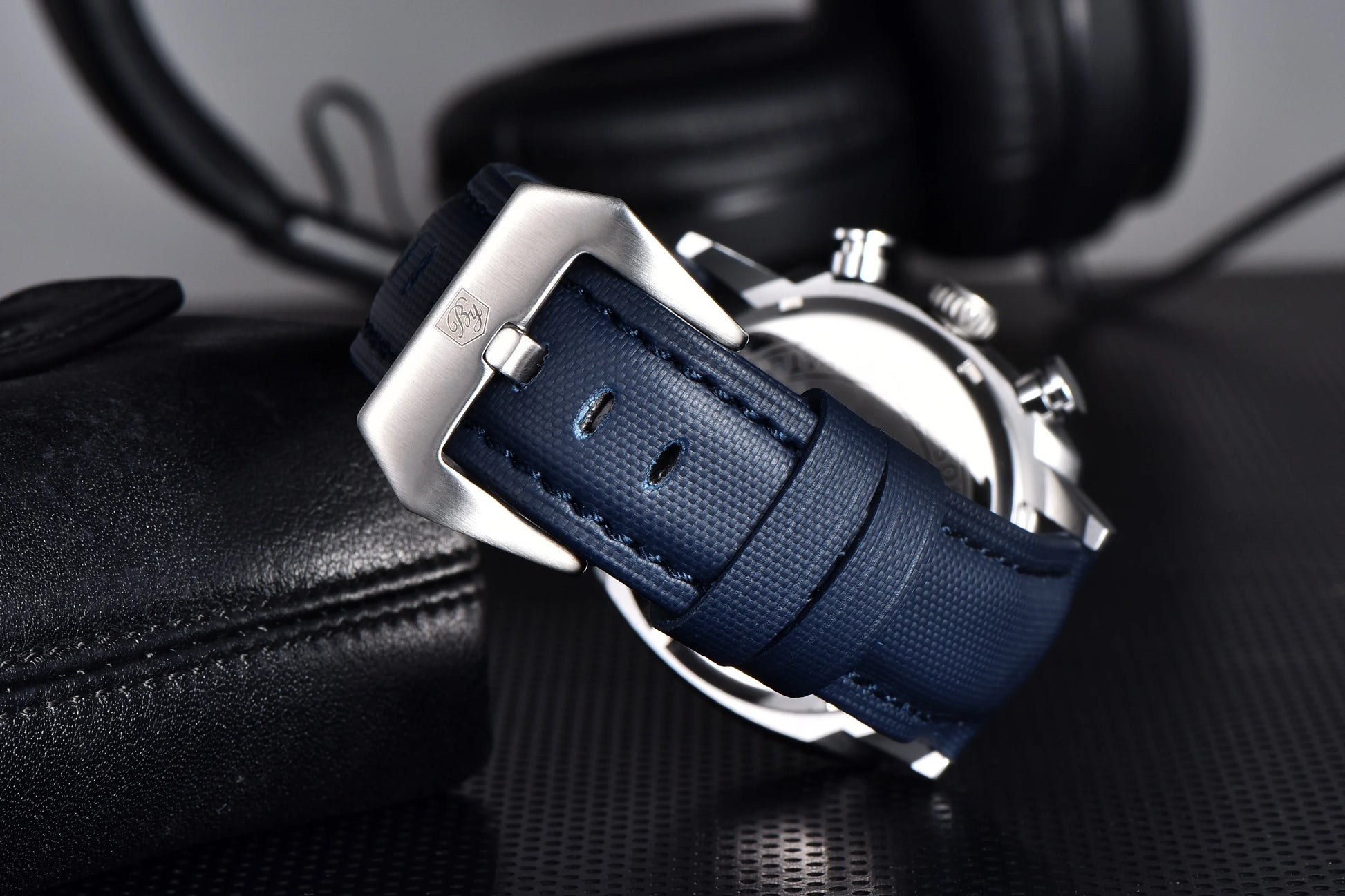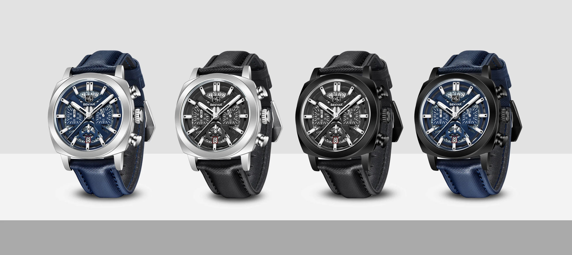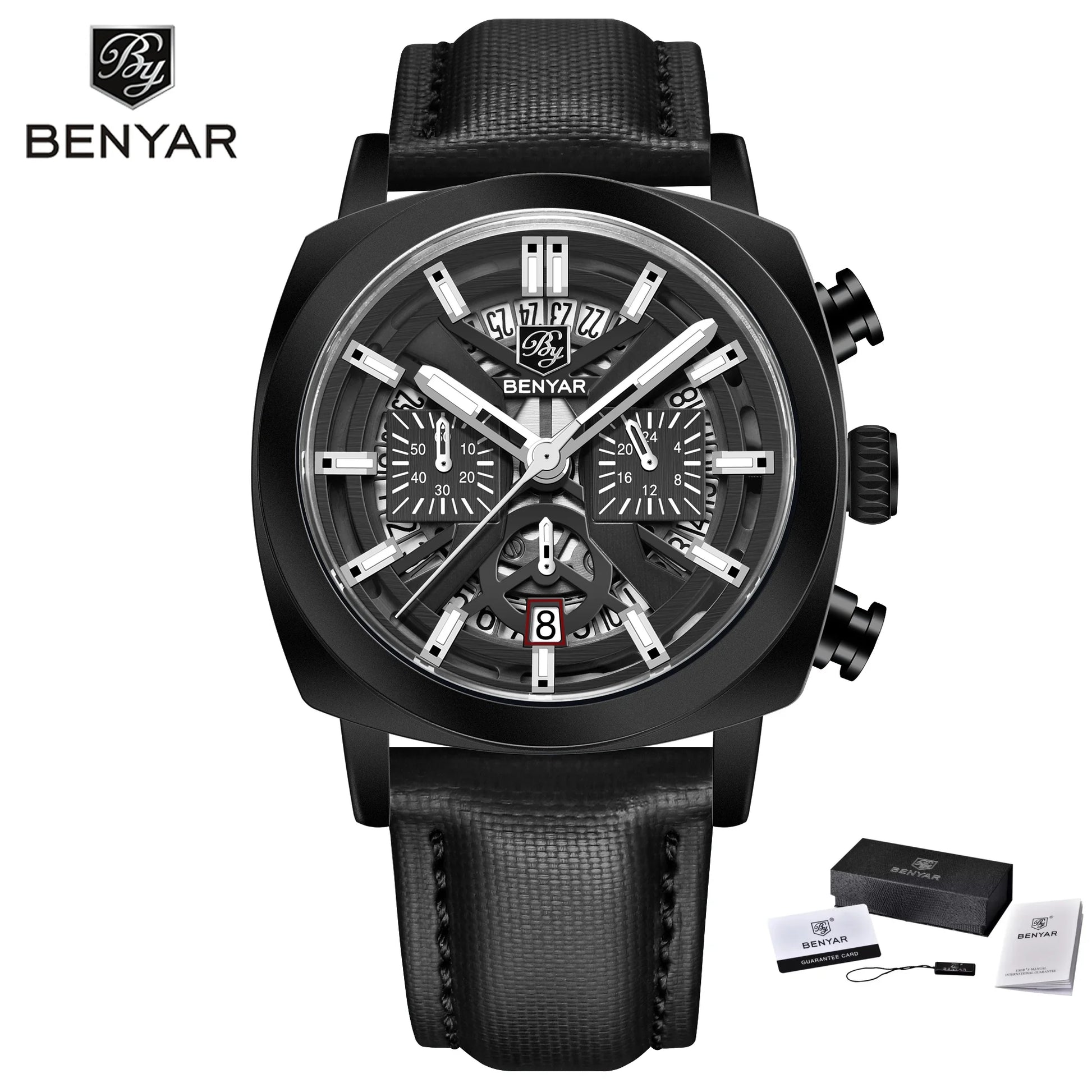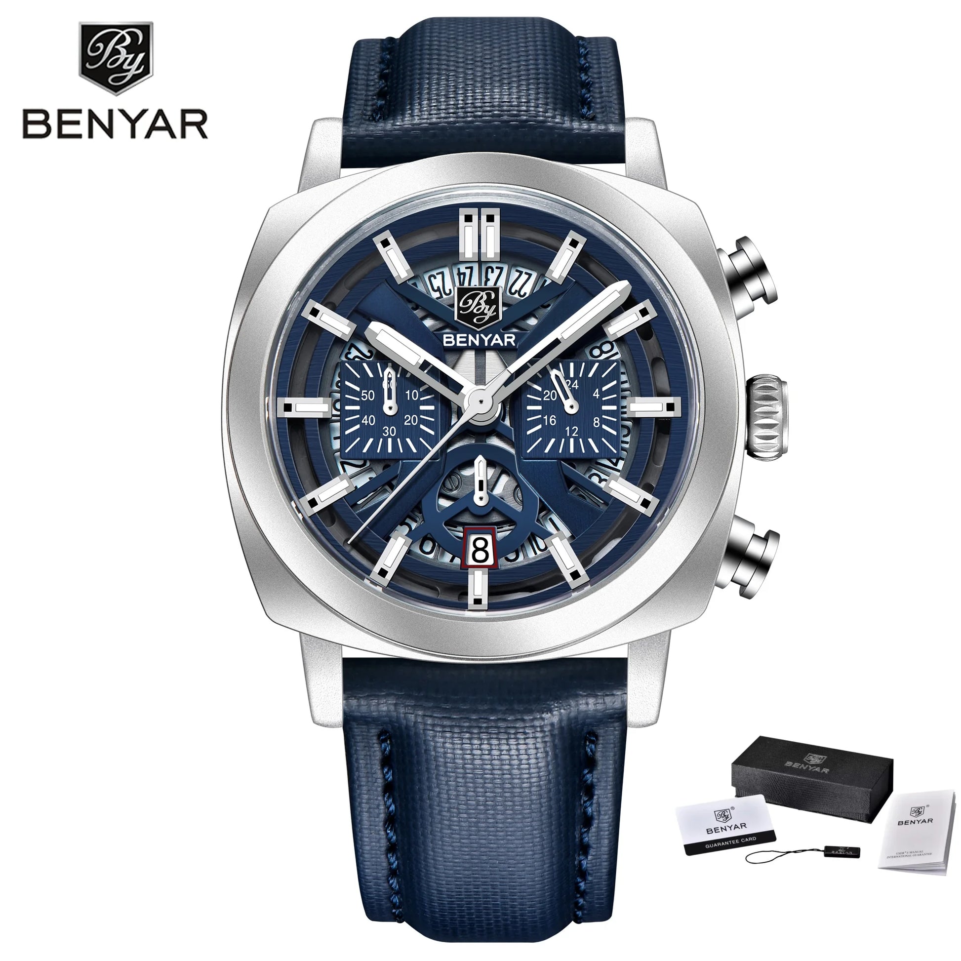 Benyar Design 2024 Men's Quartz Watch 43mm Luminous Dial 50m Water Resistant Anti-Reflective Chronograph Fashionable New