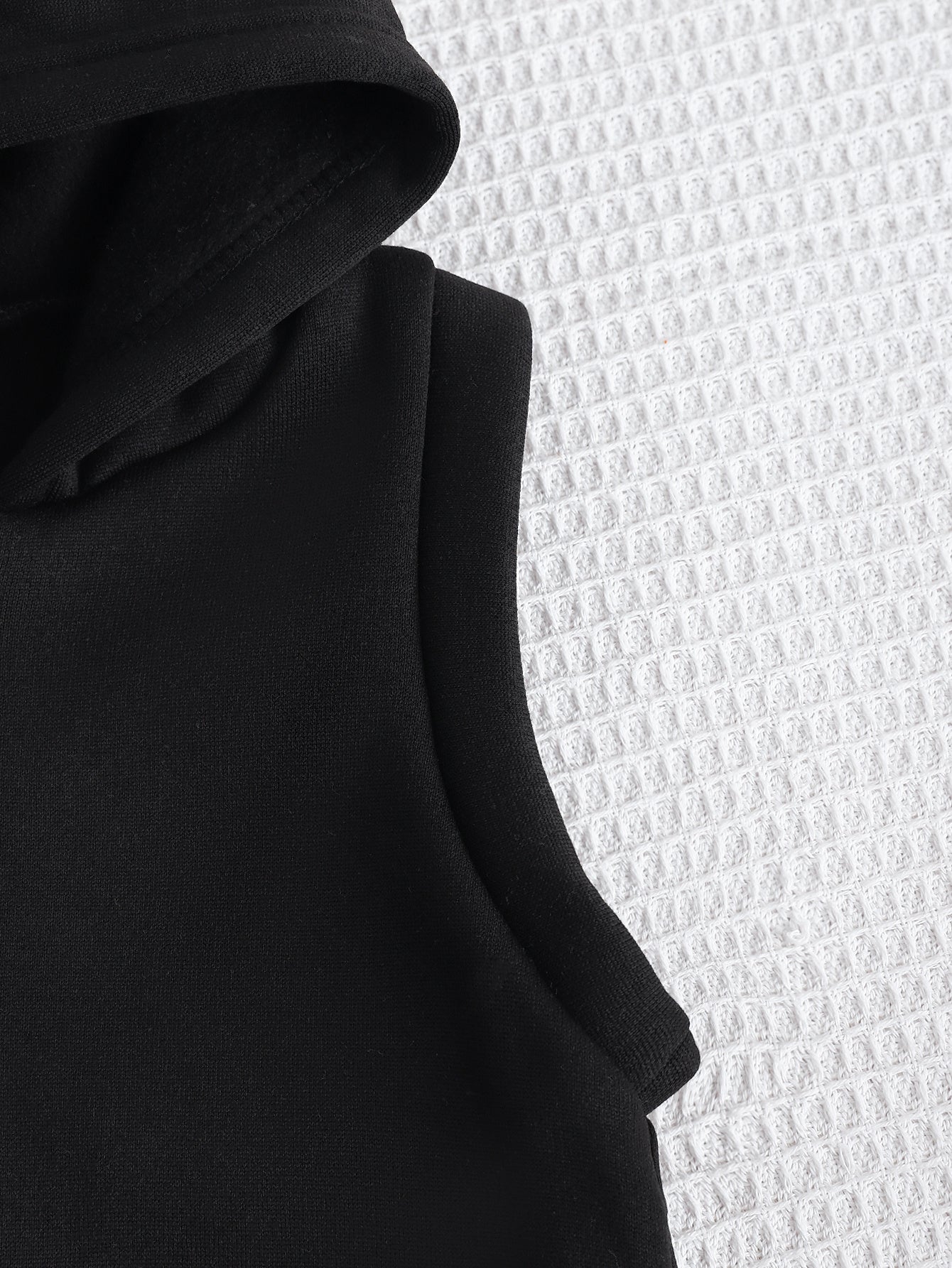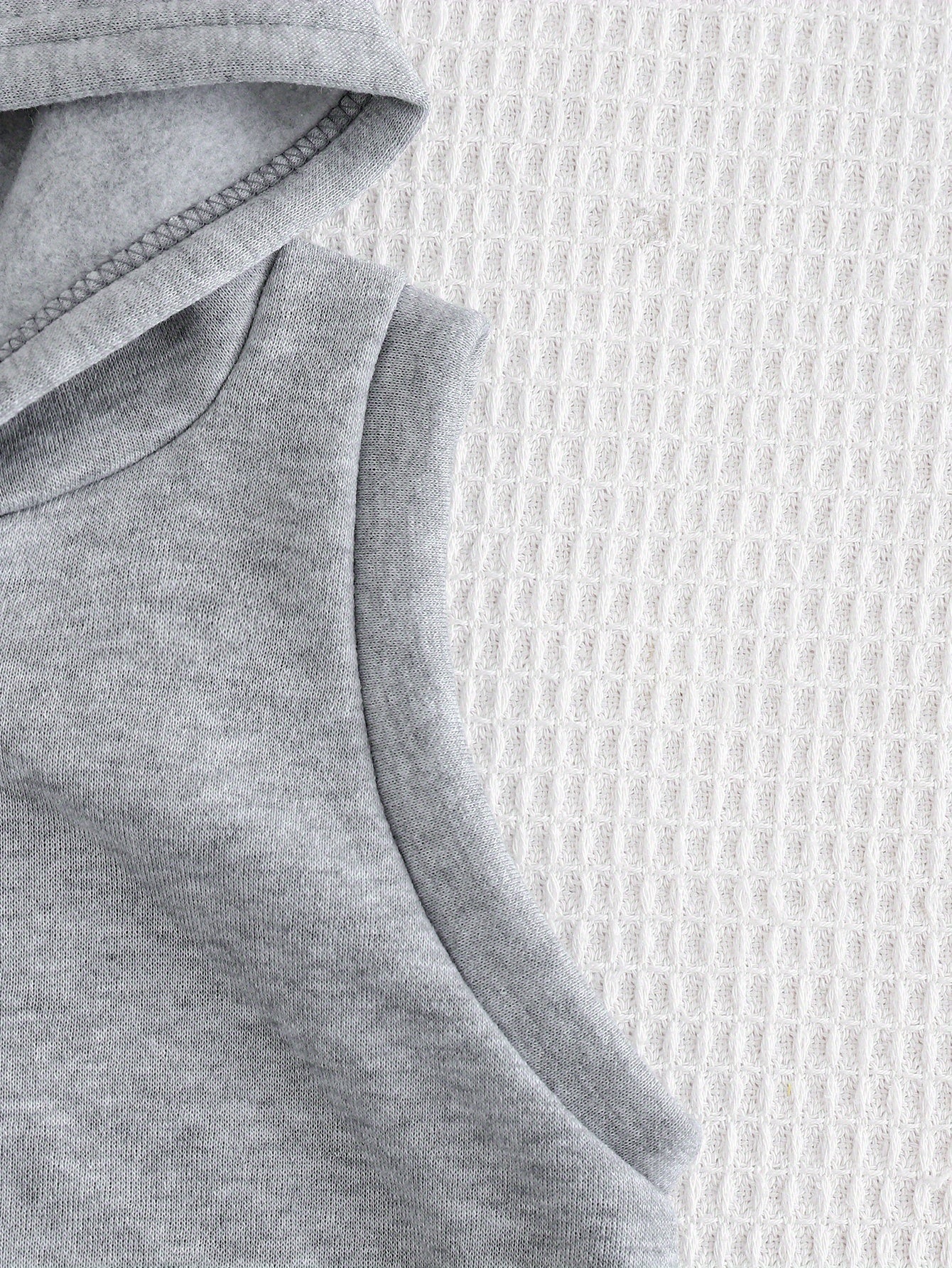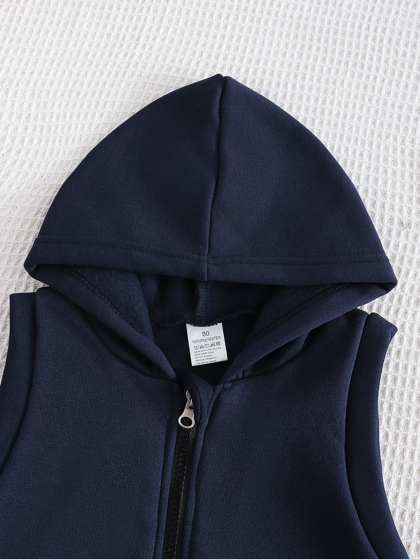 Boys' Autumn/Winter New Three-Piece Set with Mickey Mouse Classic Cartoon Print Long-Sleeve Round Neck Hoodie and Zip-Up Sleeveless Top, Matching Printed Sweatpants - Fleece-Lined Thickened Warm Comfortable Outfit for Parties