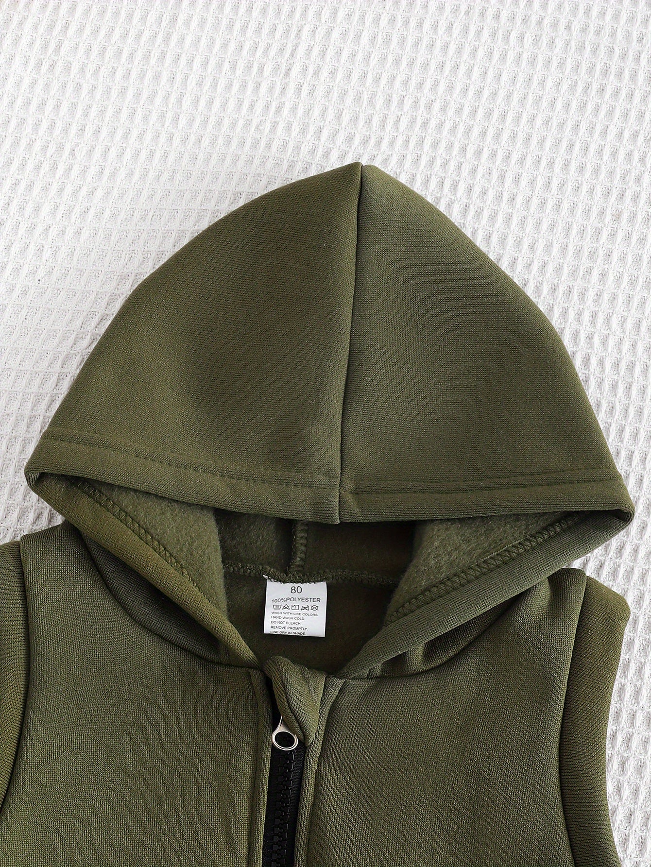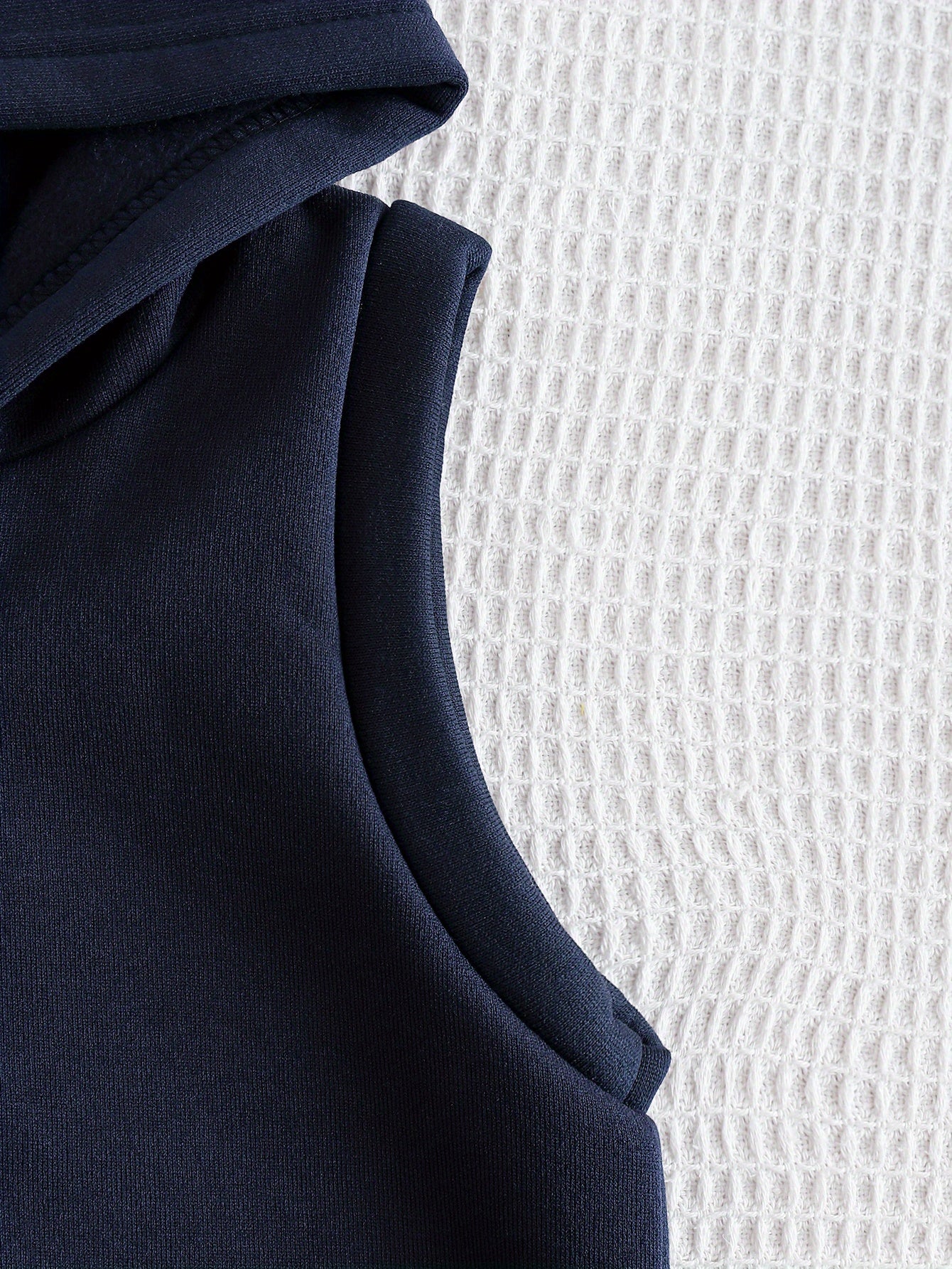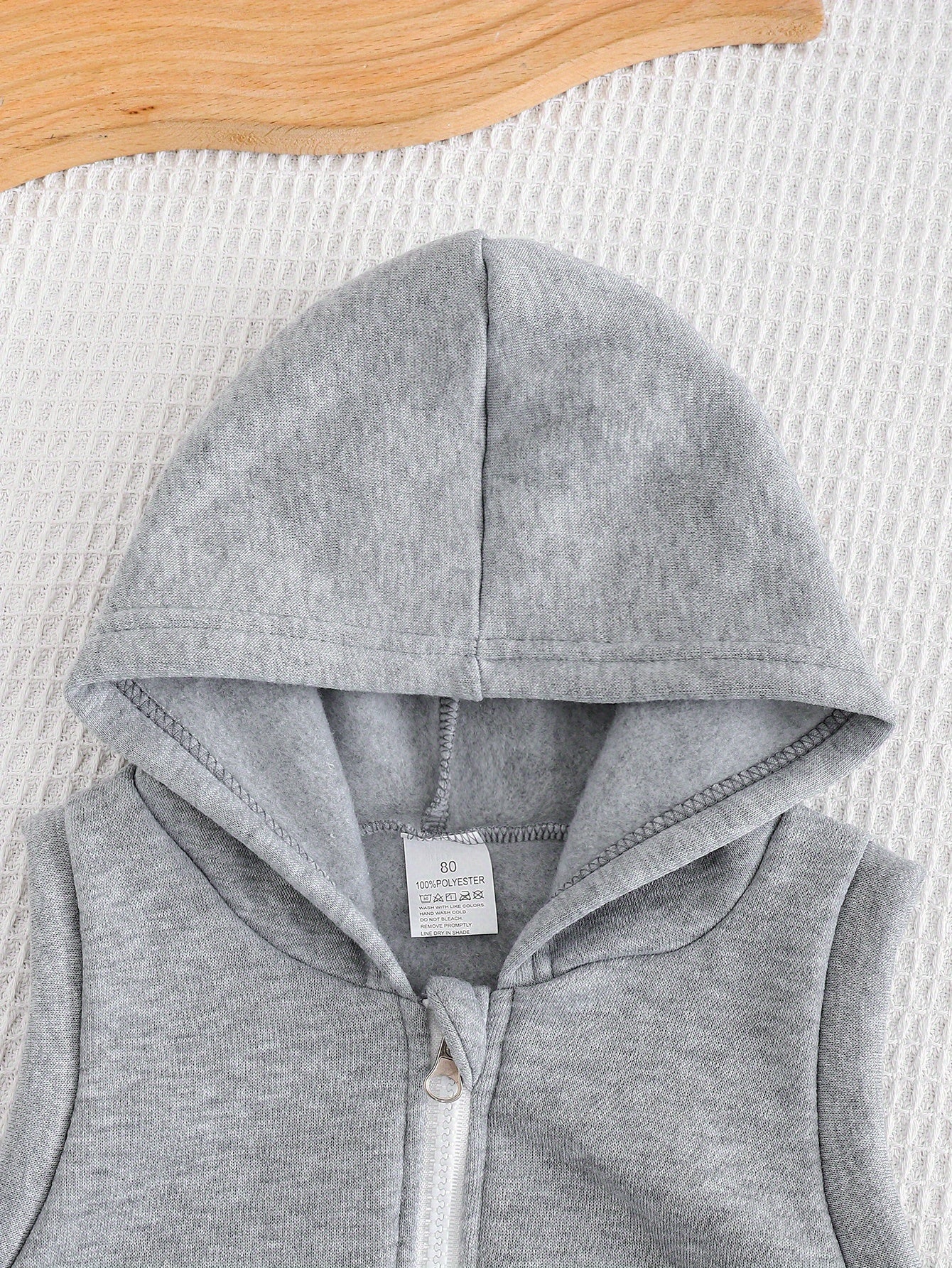 Boys' Autumn/Winter New Three-Piece Set with Mickey Mouse Classic Cartoon Print Long-Sleeve Round Neck Hoodie and Zip-Up Sleeveless Top, Matching Printed Sweatpants - Fleece-Lined Thickened Warm Comfortable Outfit for Parties