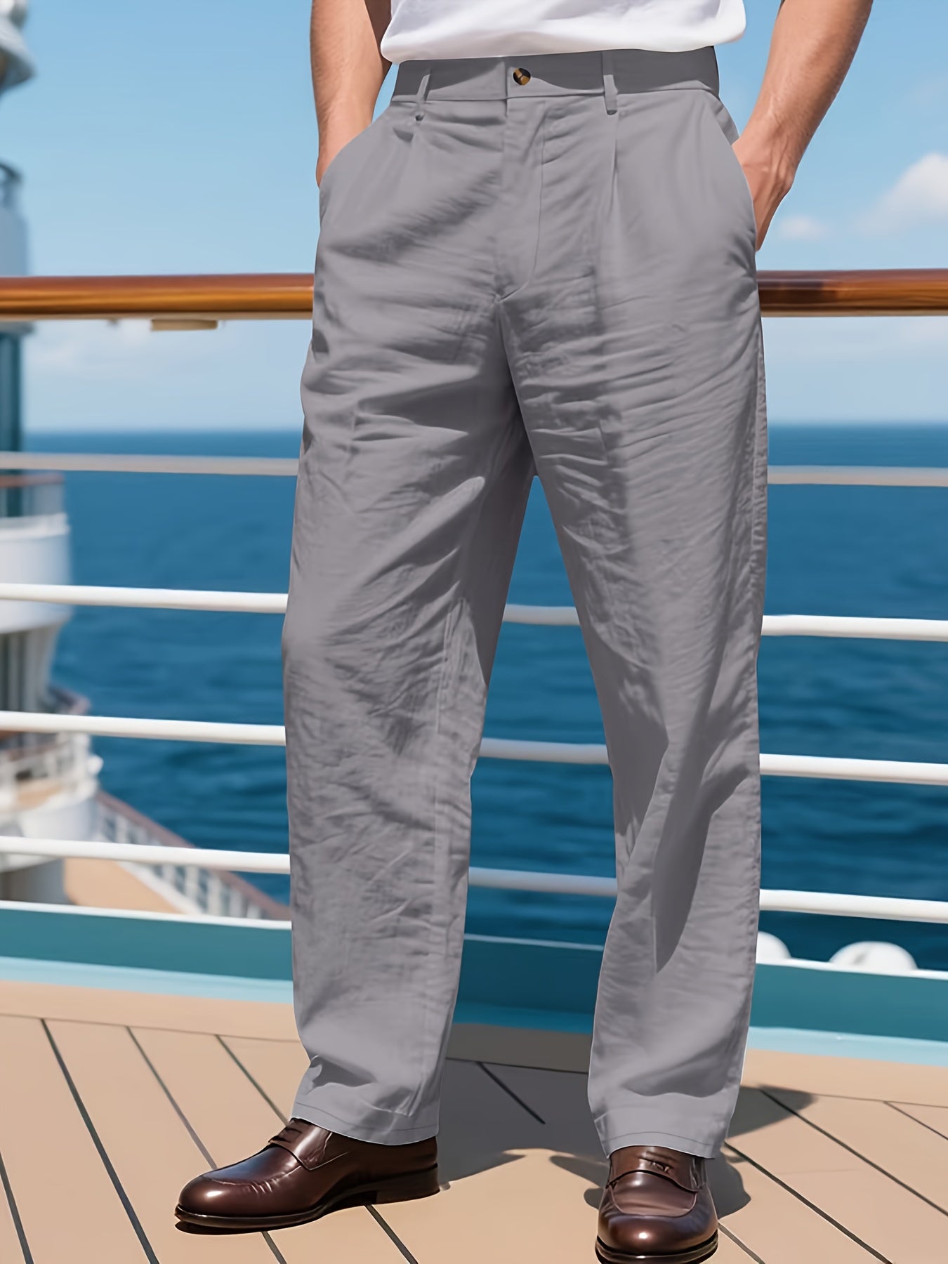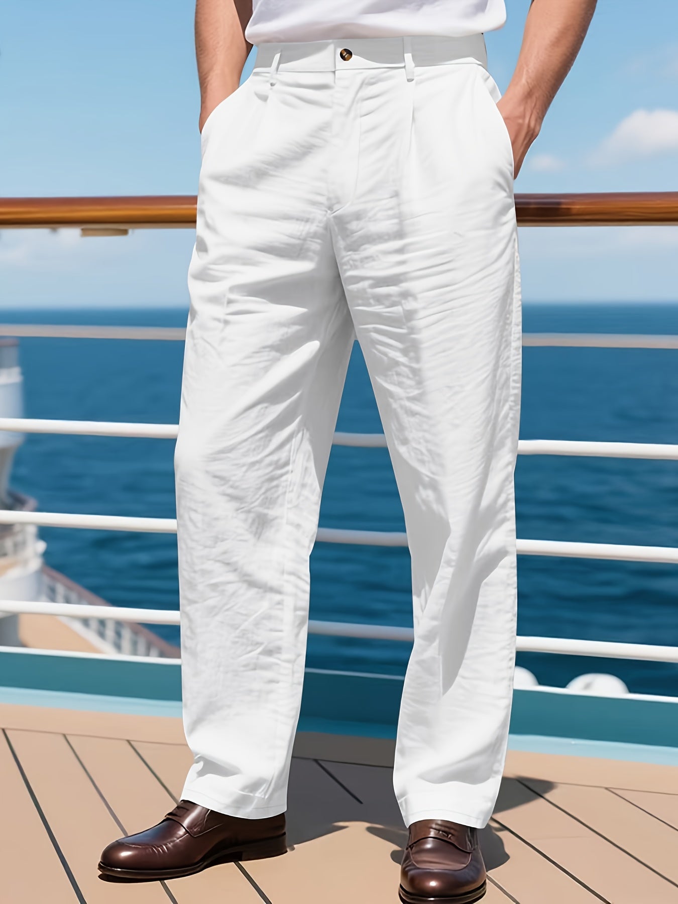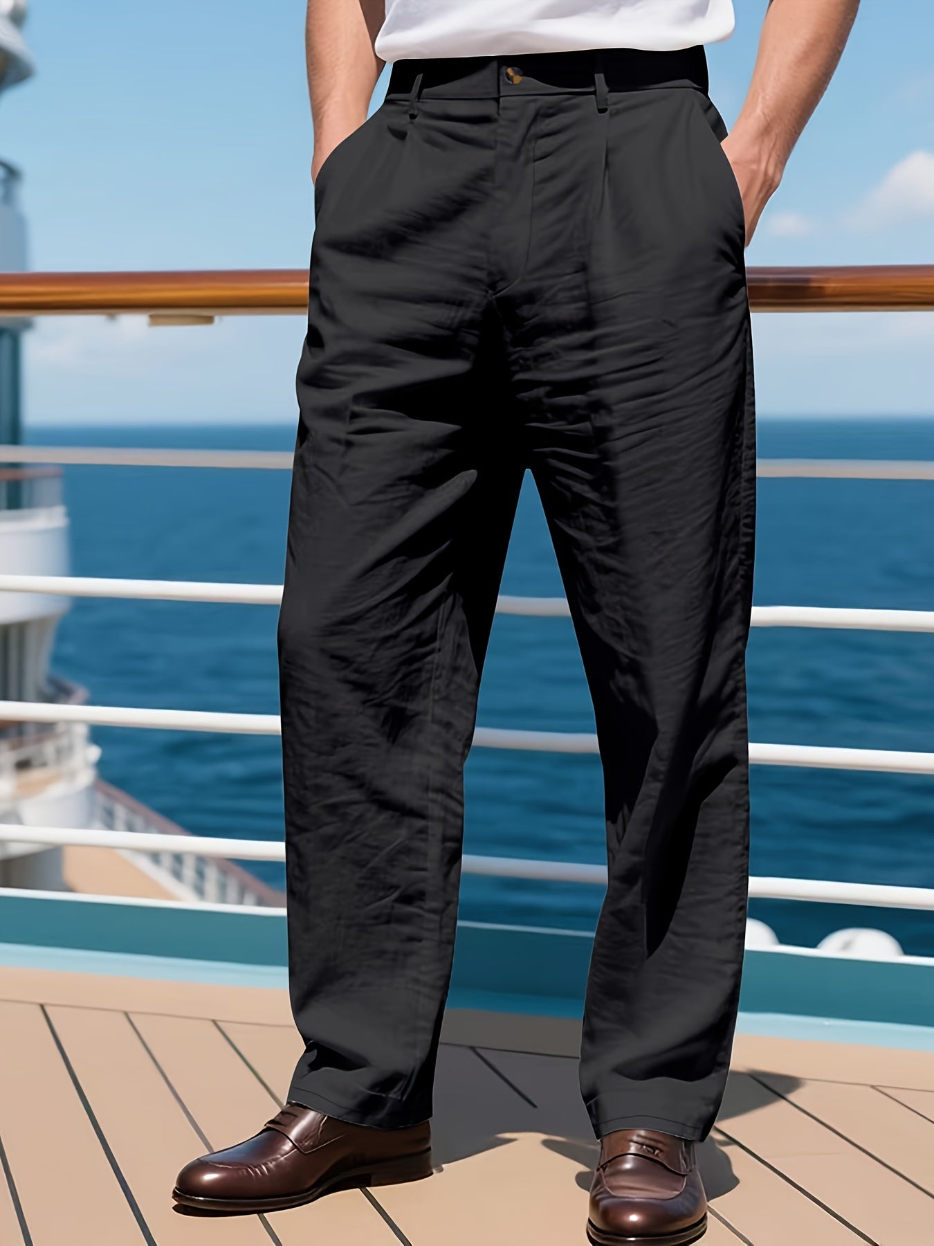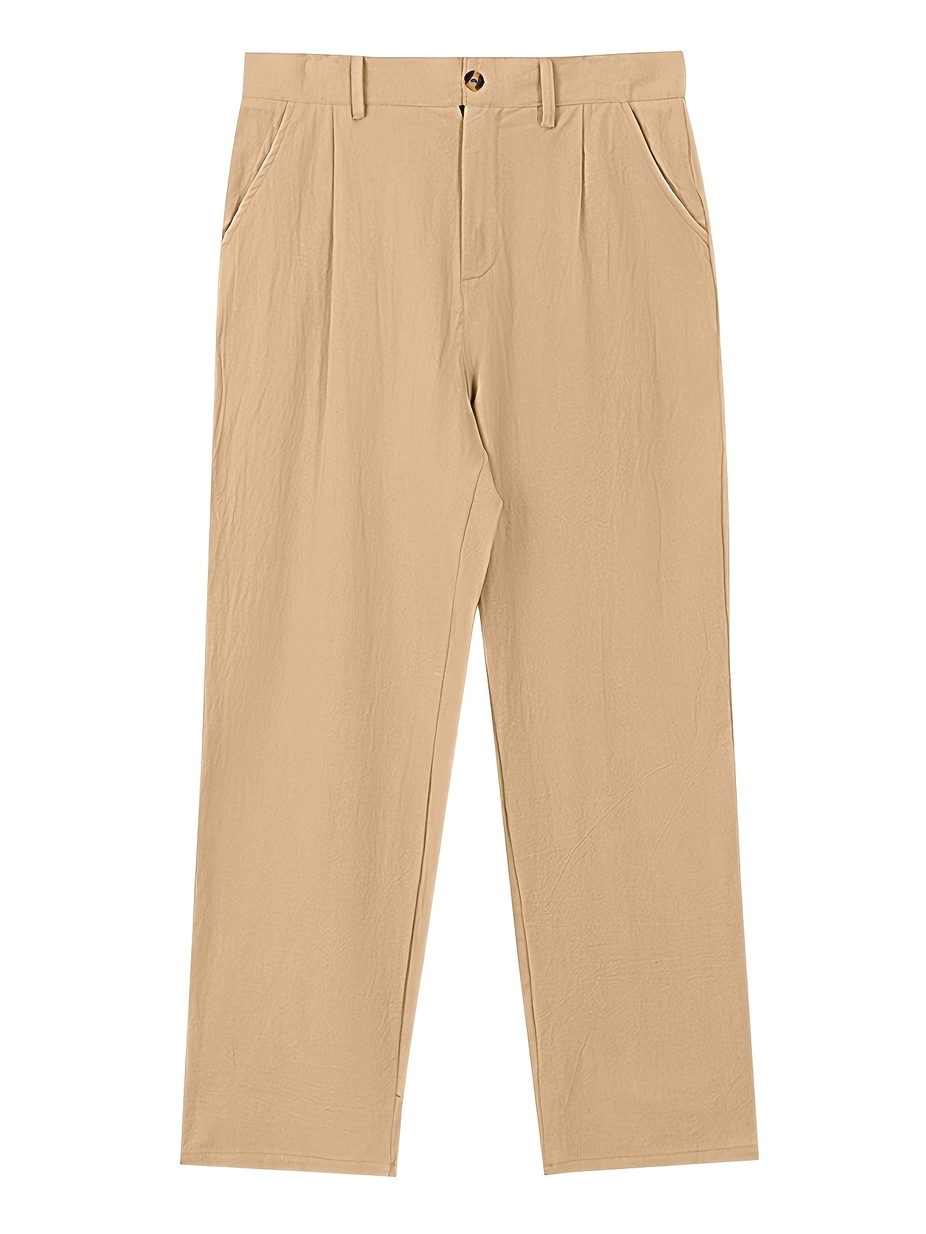 Feitas em tecido de linho não elástico, combinam conforto, respirabilidade e durabilidade, mantendo o visual impecável durante todo o dia. O design de perna reta clássica oferece um caimento moderno e profissional, adequado a todas as estações.
