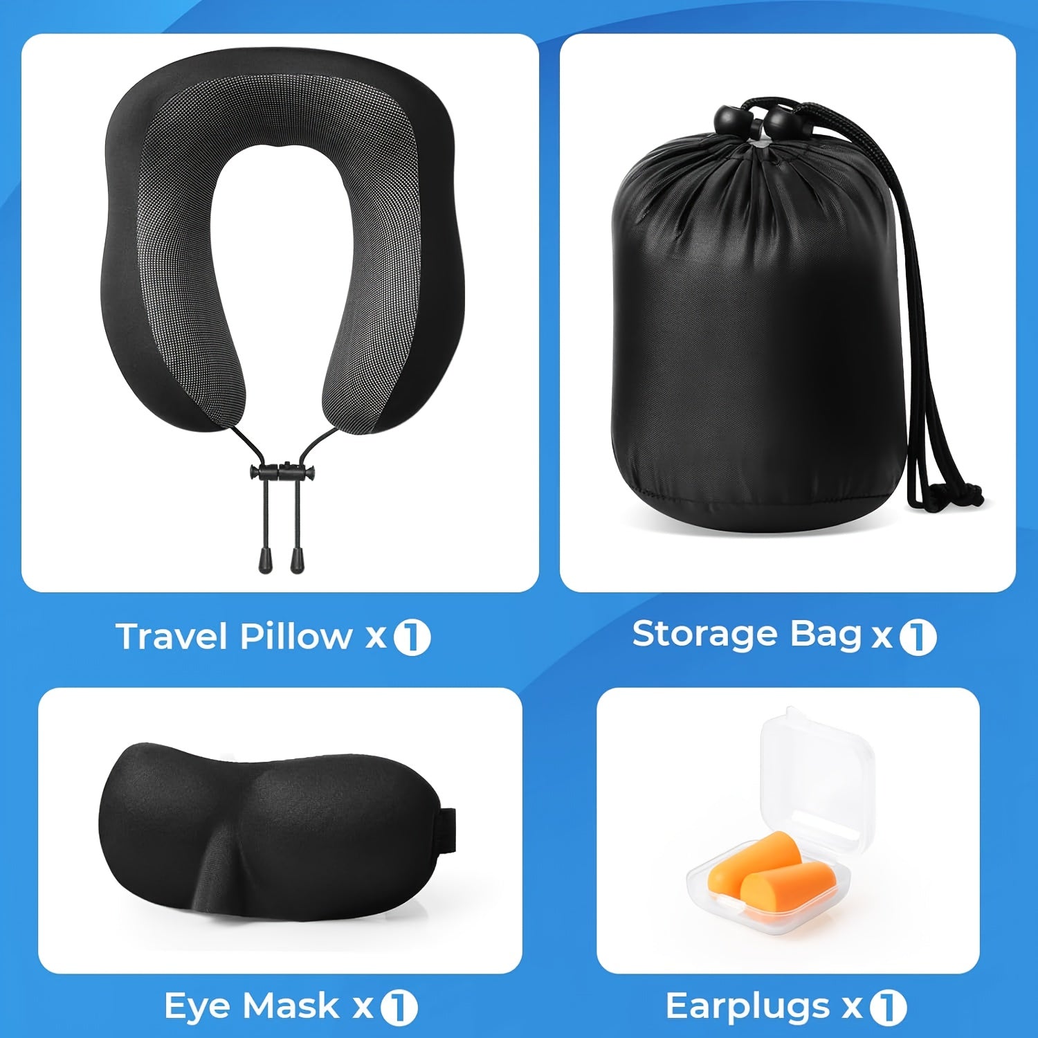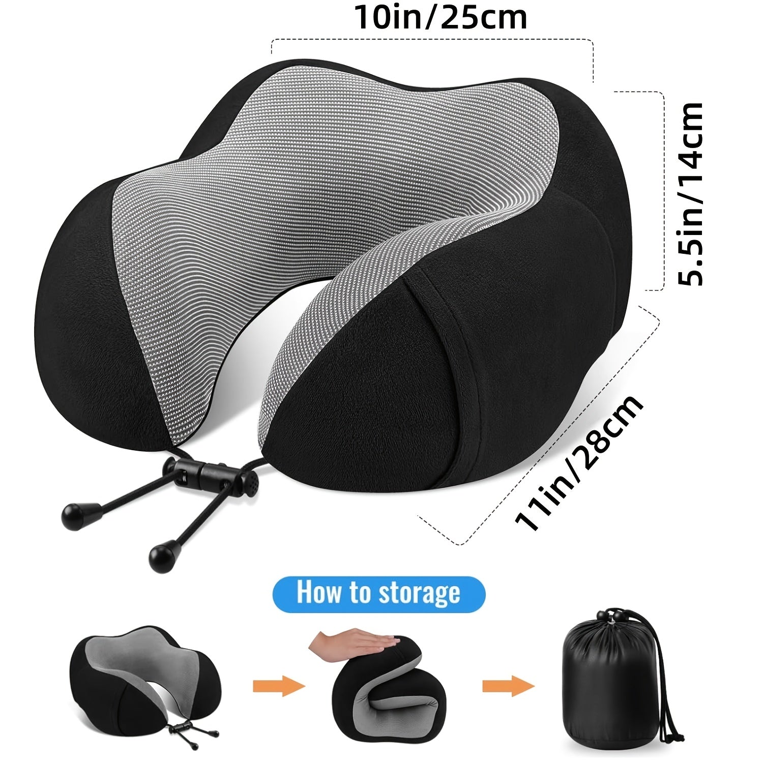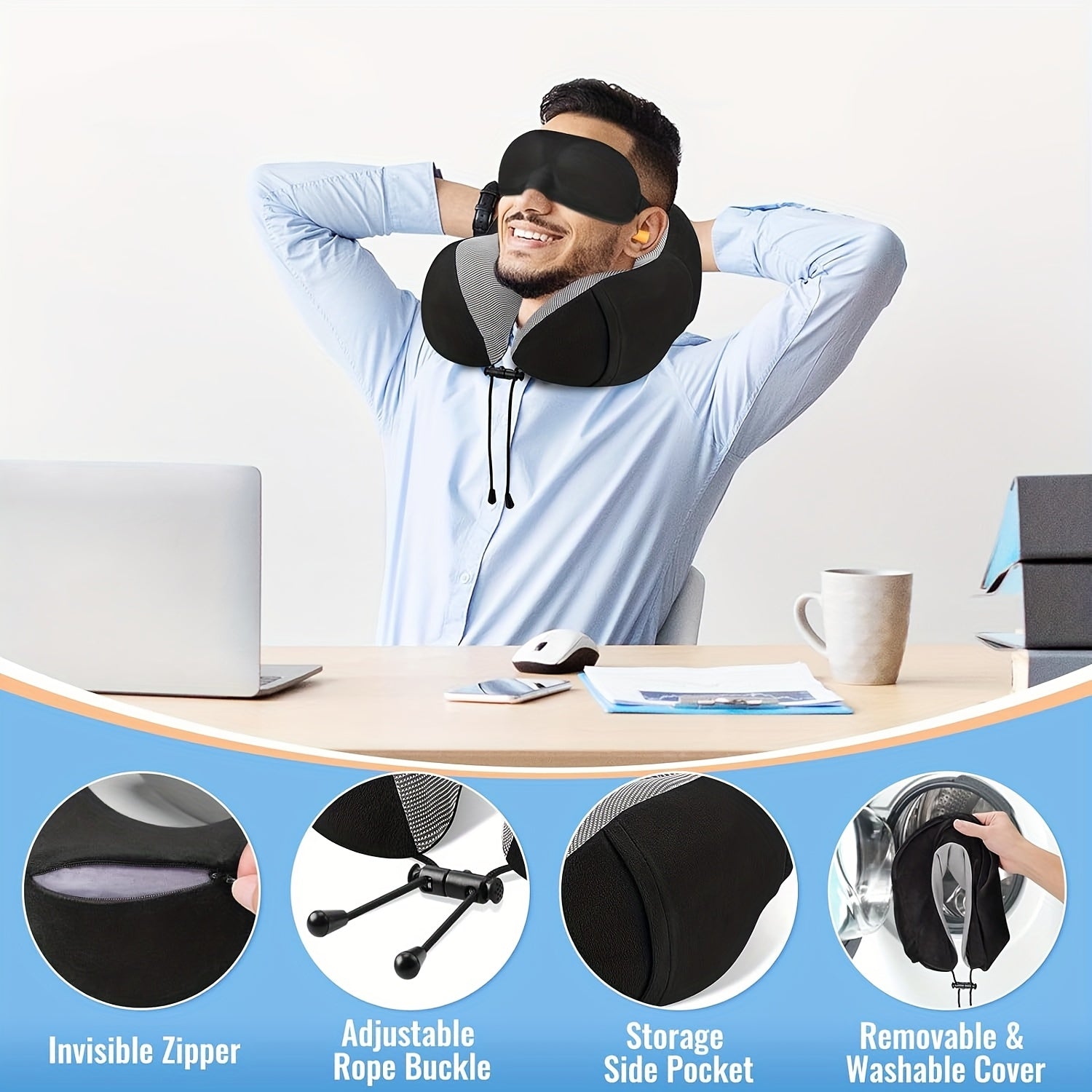 Camel Shape Pure Neck Pillow, Machine Washable, Detachable, Comfortable and Breathable, Travel Set with Adjustable Buckle, 3D Contour Eye Mask, Earplugs and Storage Bag, Very Soft Fit for Body, Good Supportive Travel Neck Pil