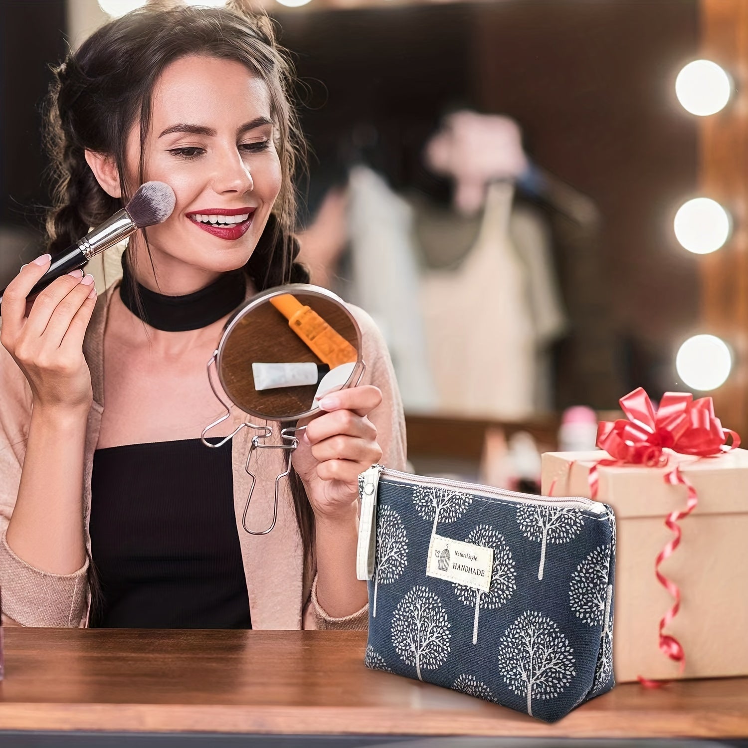 Casual Canvas Cosmetics Bag, Zipper Coin Purse, Portable Travel Storage Bag