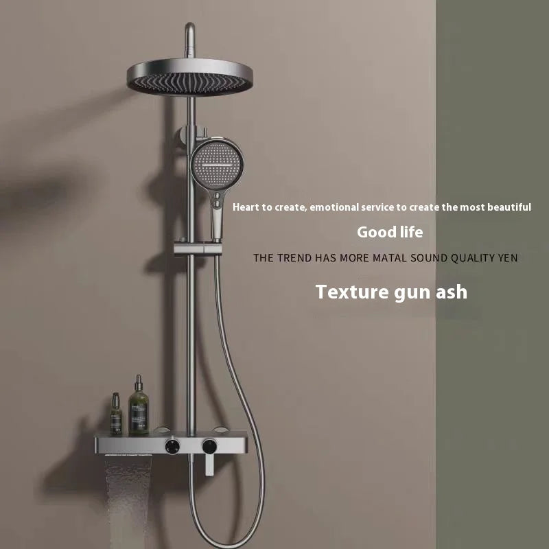 Cross-Border Household Toilet Large Waterfall Water Outlet ABS Chrome Soft Hot Cold Copper Brushed Gold Shower Suit Storage