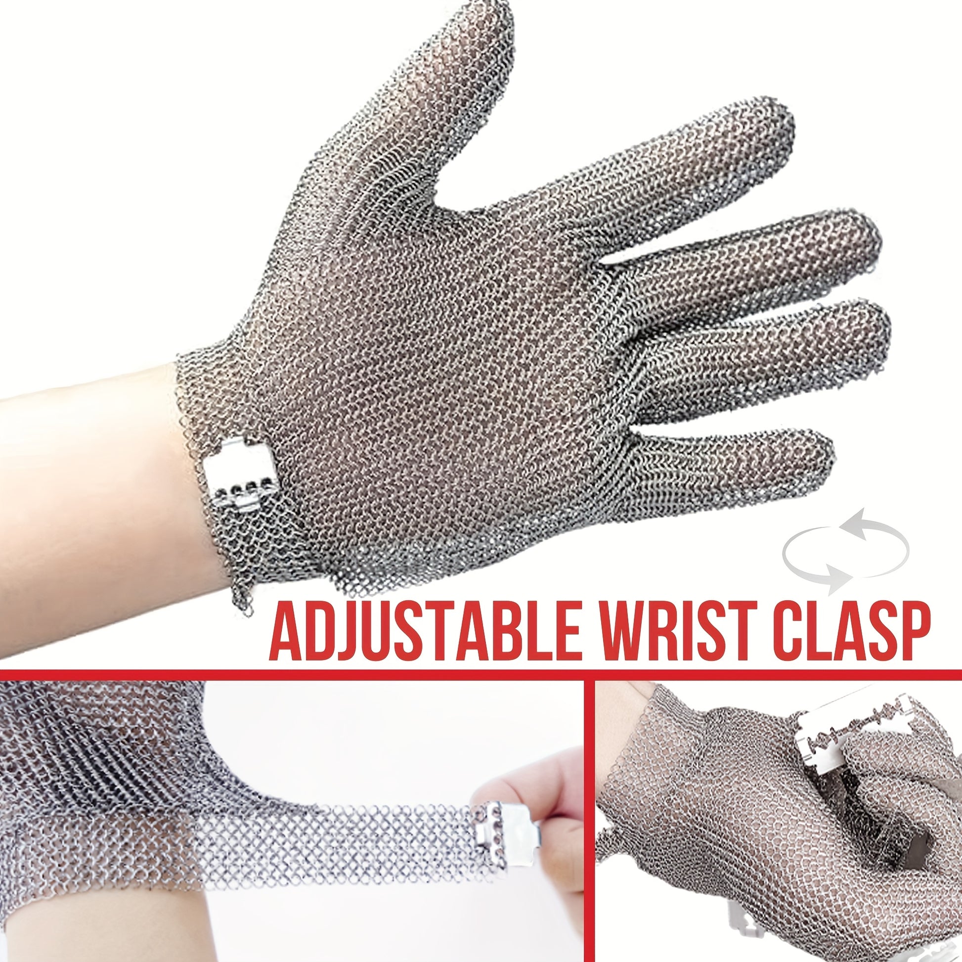 Cut-Resistant Stainless Steel Chainmail Glove | ANSI A9 Certified | Adjustable Buckle Closure | Ideal for Chefs, Butchers & Fish Filleting | Durable Metal Mesh Design | Enhanced Safety for Kitchen Use, Fish Filleting Glove |