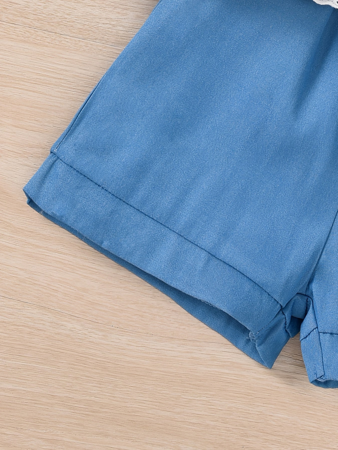 Cute Ruffle Lace Top & Check Shorts Two-Piece Set - White Blouse with Yellow Bow, Yellow & White Gingham Shorts, Perfect for Spring/Summer, Casual Playwear|Ruffle Detail Top|Nonstretch Fabric, for Outdoor