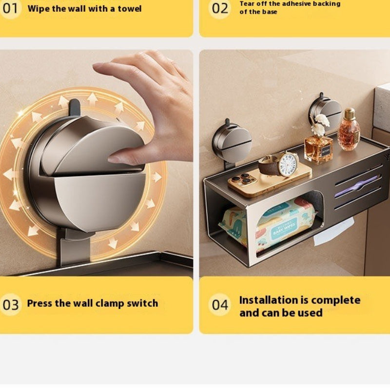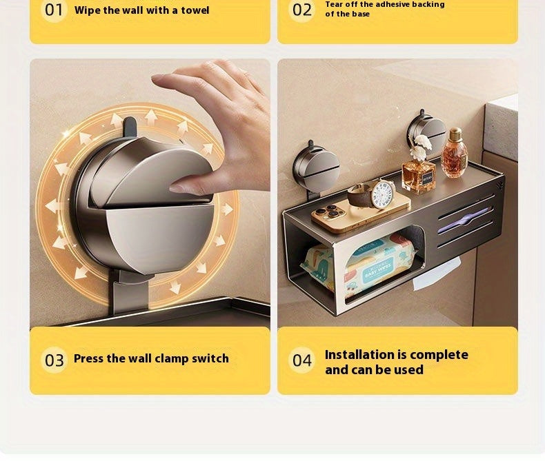 CYCY Wall-Mounted Bathroom Tissue Box Holder with Suction Cup Installation - Space-Saving Square Design, Durable Carbon Steel, Holds Multiple Rolls, Ideal for Toilet Paper & Face Towels, Modern Minimalist Style, Toilet Paper