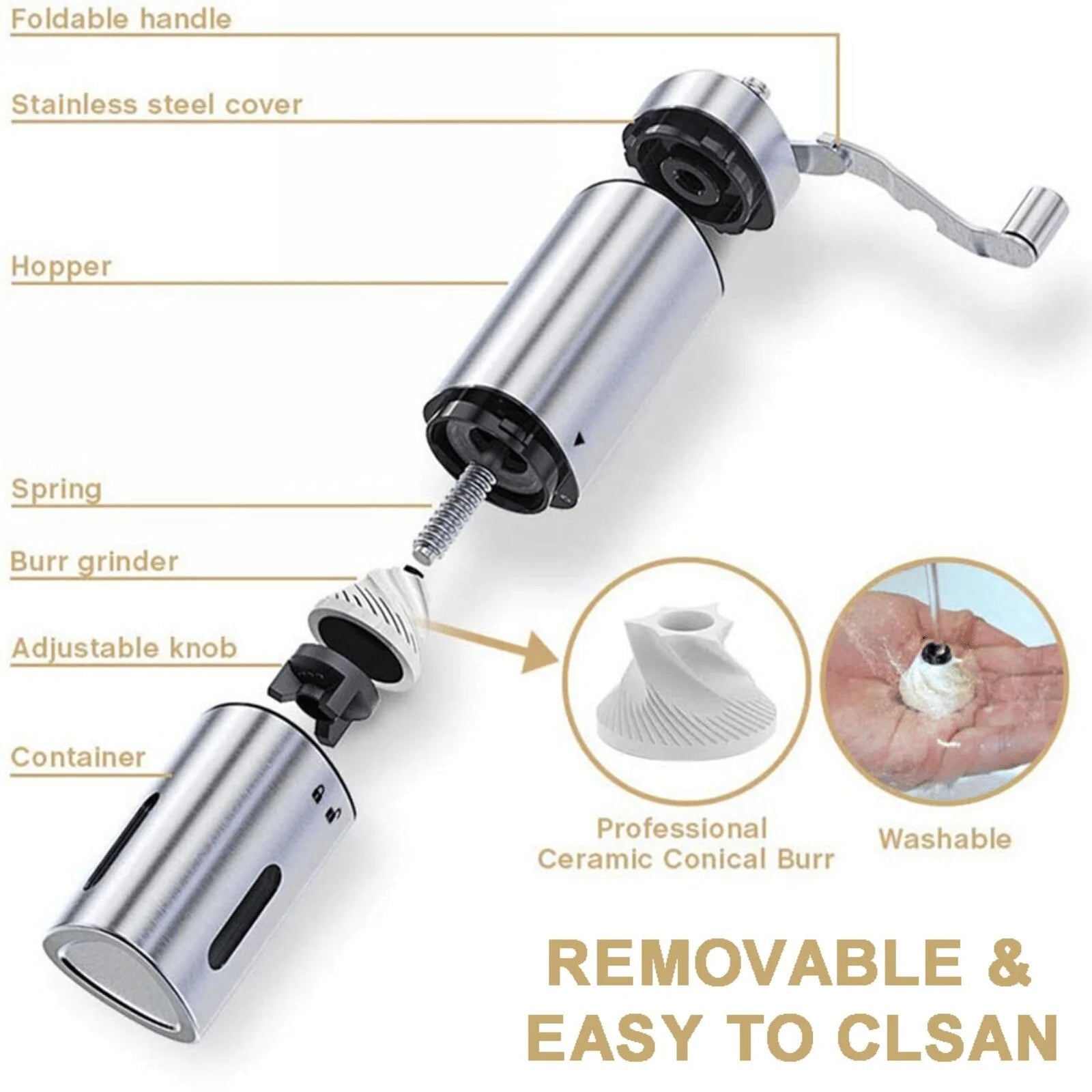 DB Luxury Hand Crank Pepper Conical Burr Grinder Custom Metal Wood Utensil Stainless Steel for Coffee Beans Mill Muller Utensils