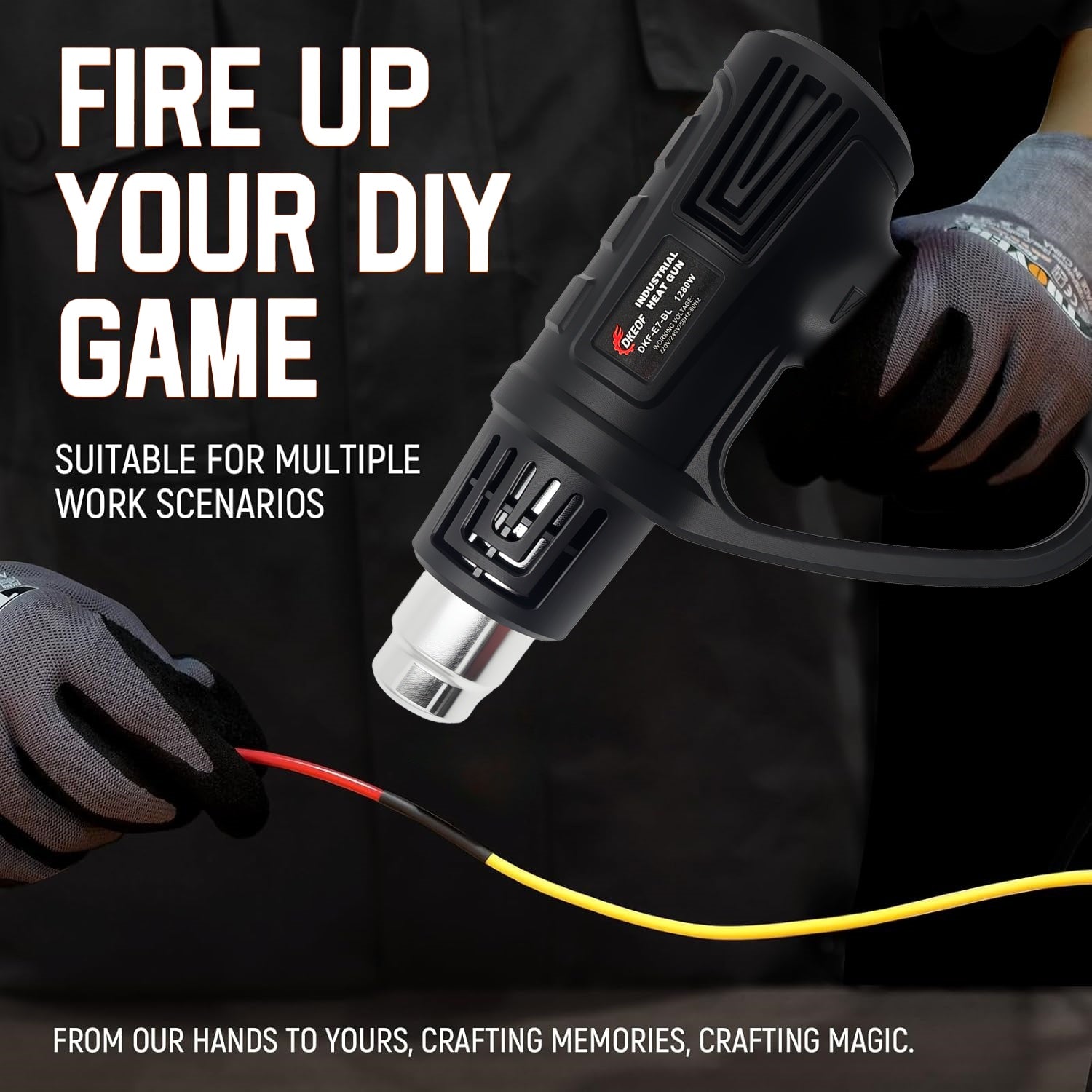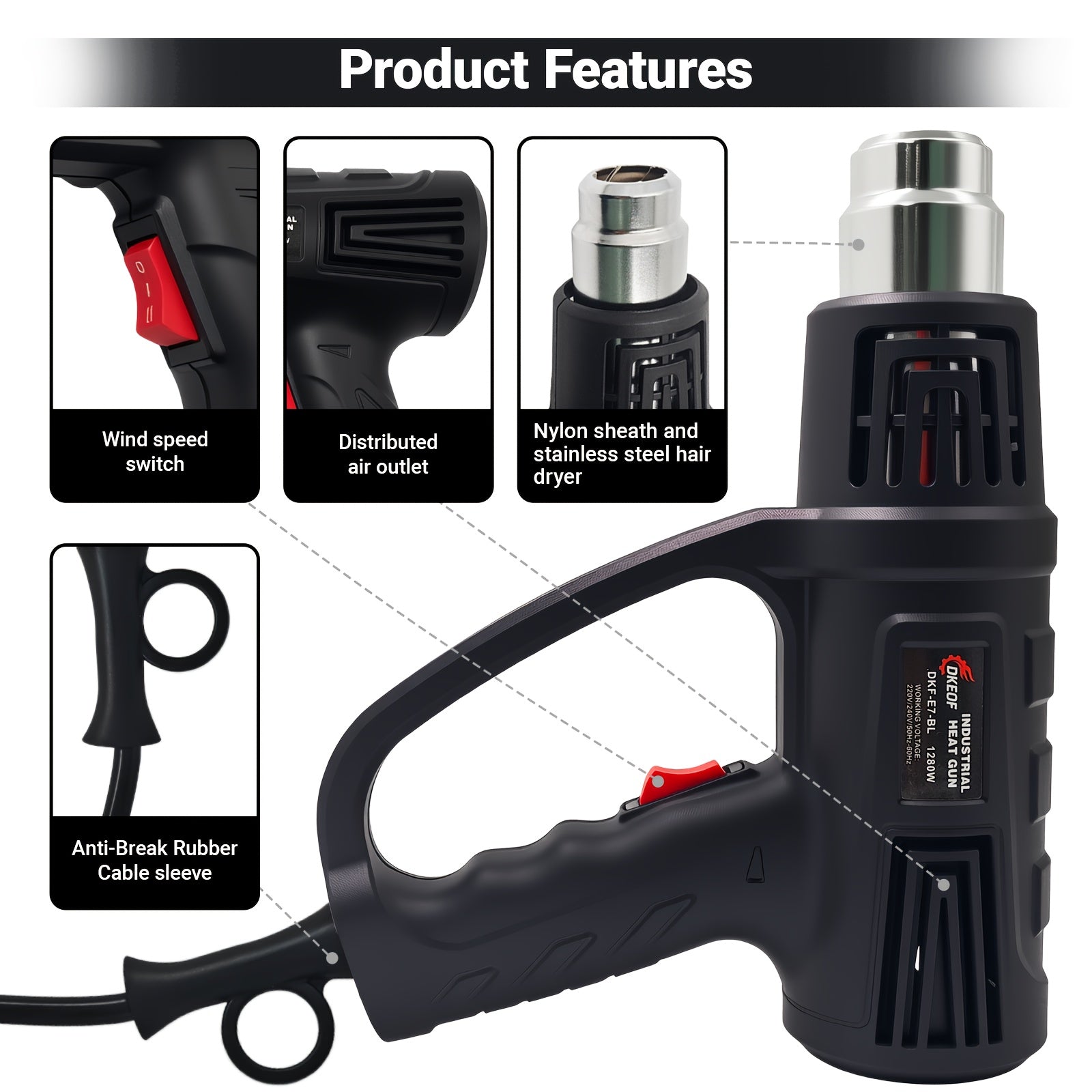 DKEOF 1280W Heavy Duty Heat Gun Kit with Dual-Temperature Settings (302°F/1202°F), Overheat Protection, Fast Heating, Ergonomic Handle & Durable Construction - for Shrinking PVC, Welding
