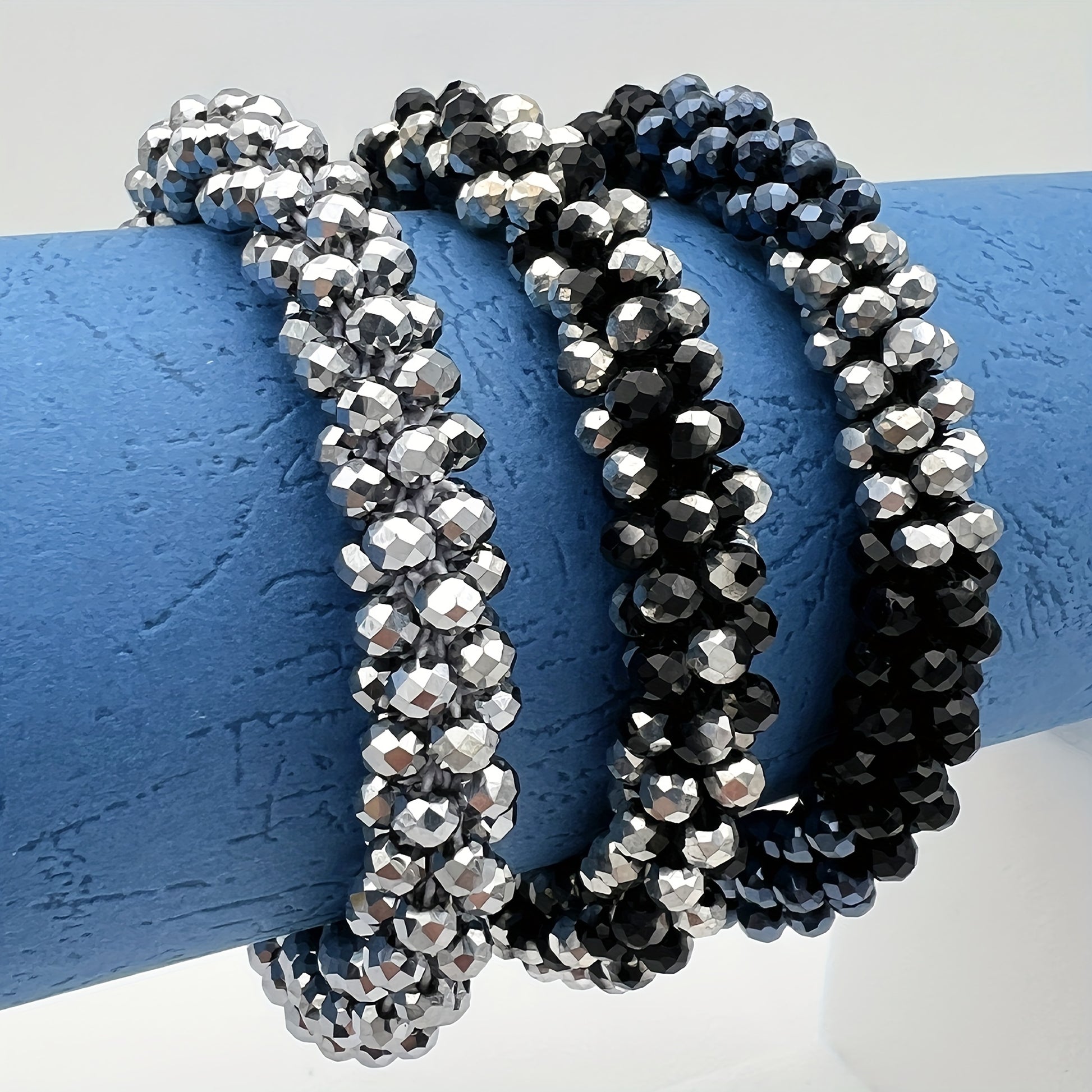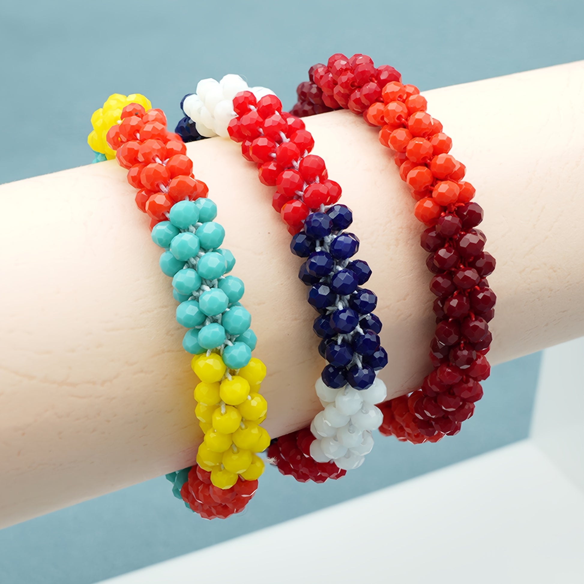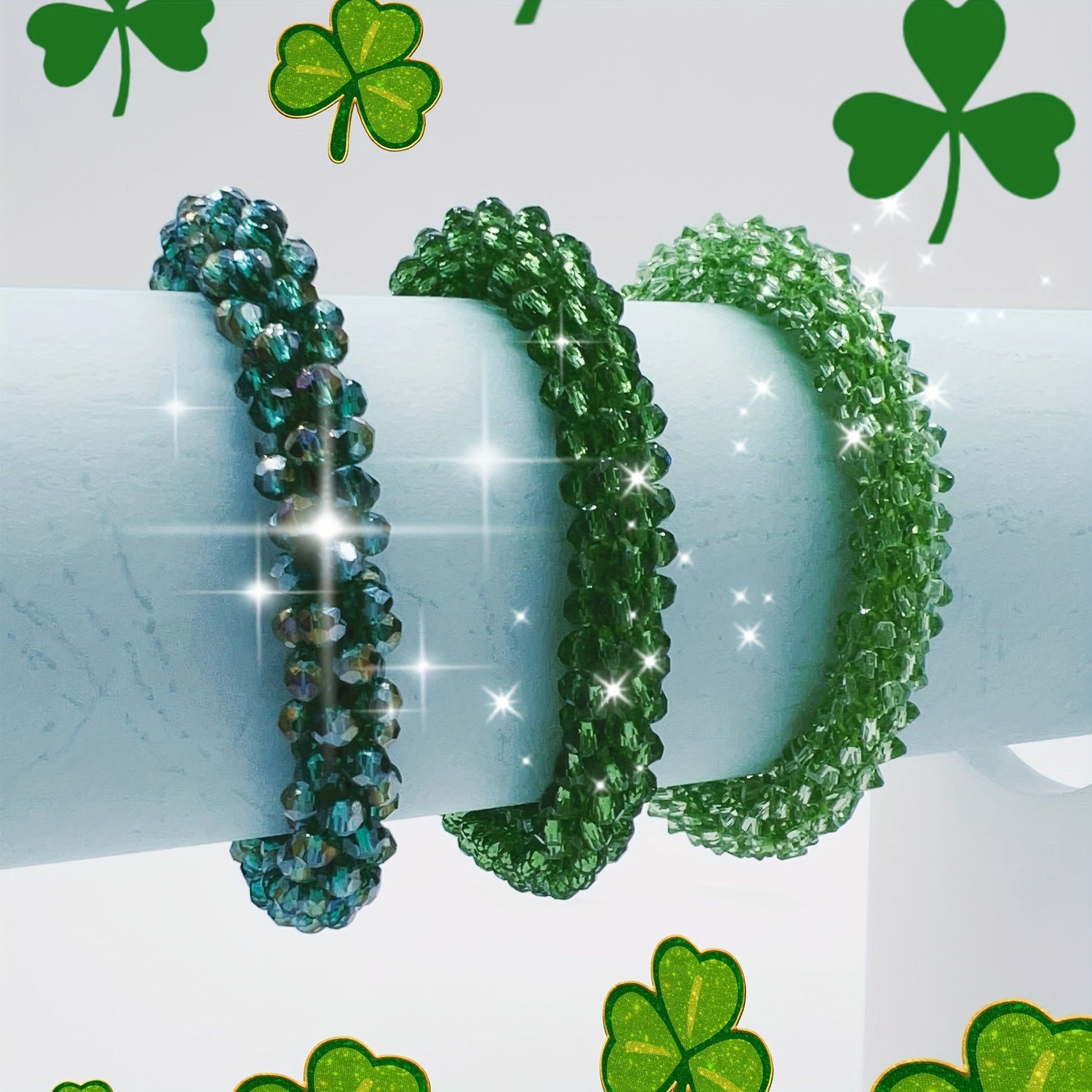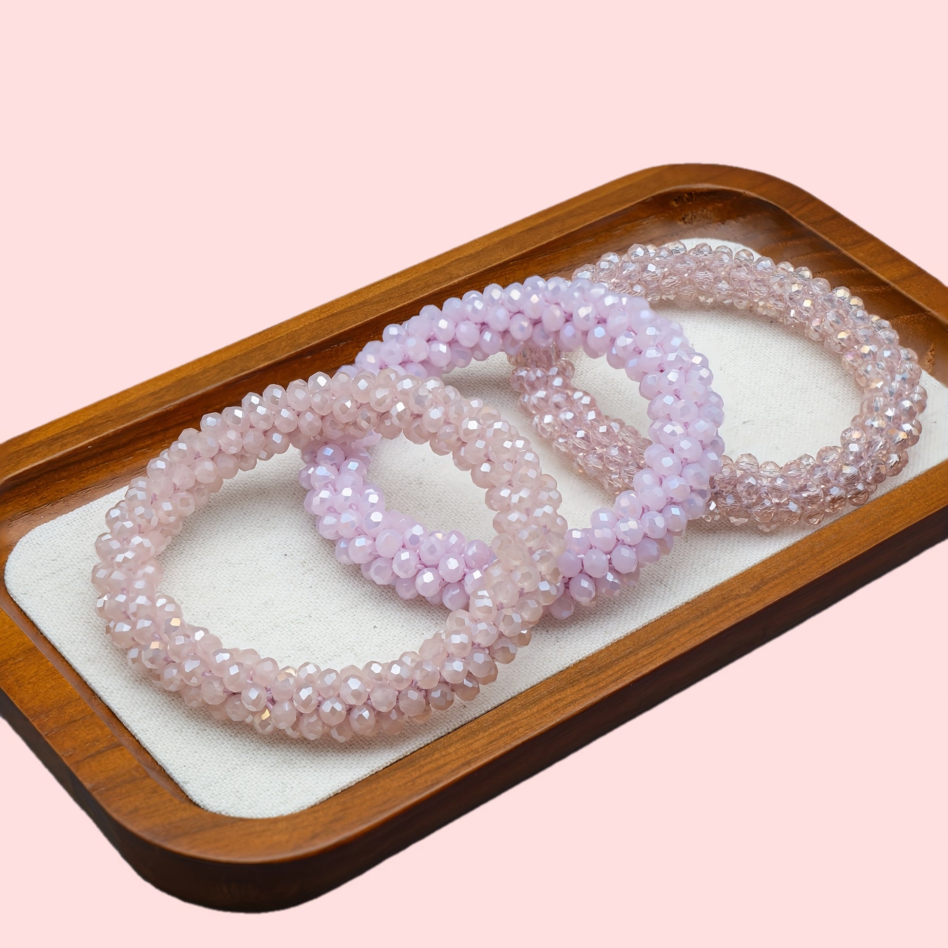 Esbbela 3pcs Bracelet Set Holiday Gift Beaded Artificial Crystal Stackable Strap Set with Elasticity Suitable for Women Men 16.51-20.32 cm Daily Vacation