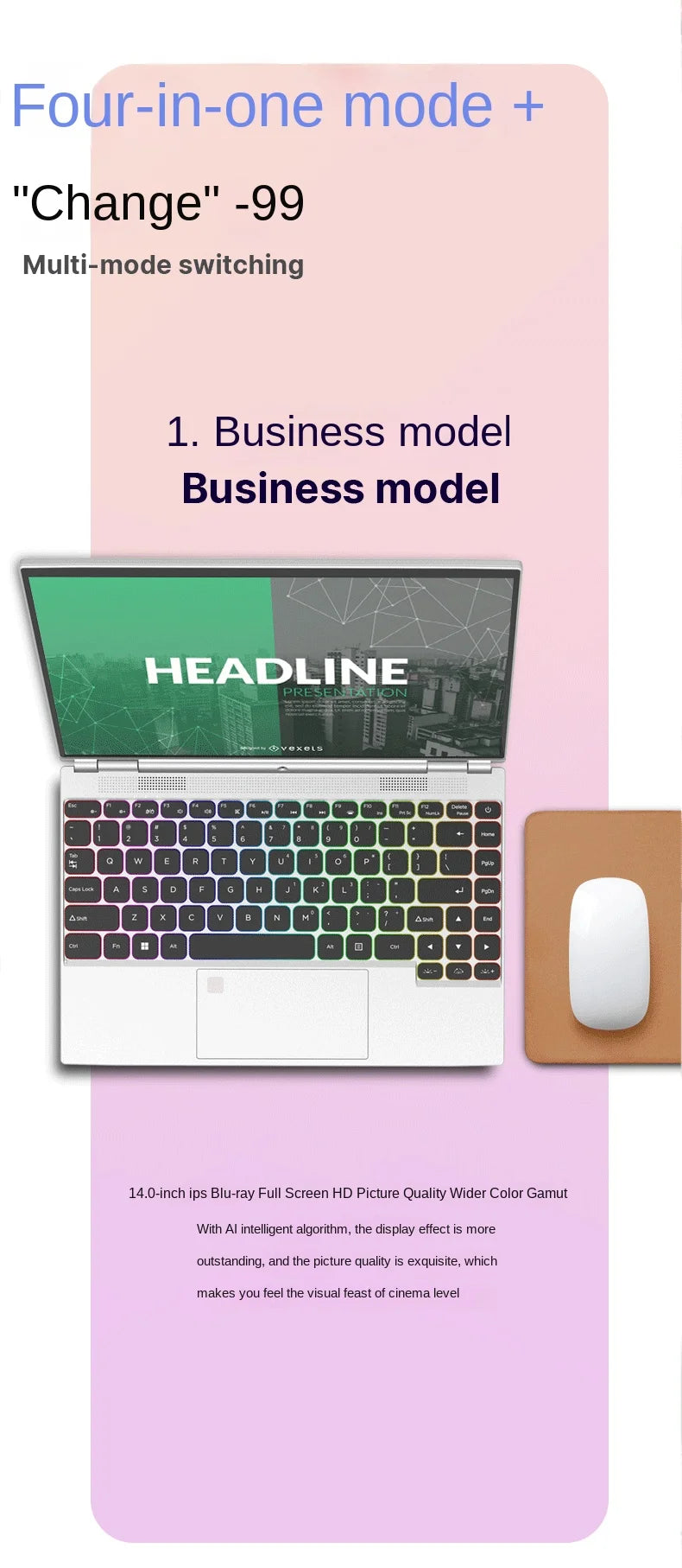 Factory Direct 14-Inch IPS Touch Screen 2-in-1 PC Tablet Light Portable Intel SSD Home Laptop New Cross-Border Wholesale English
