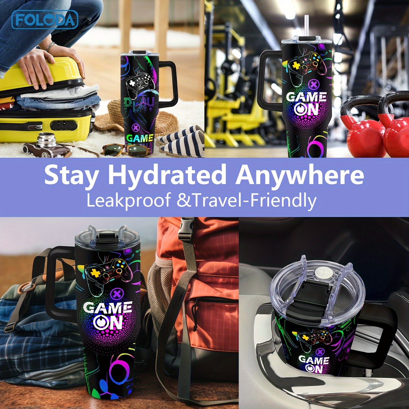 Foloda 1pc 40oz Gaming Mug Tumbler, Gamer Gifts For Men, Gifts For Gamers Men Boys, Cool Gaming Gift, Game Mug, Gifts For Game Lovers Stainless Steel Cup With Handle Lid Straw, Tumbler For Outdoor Camping Travel Accessories B