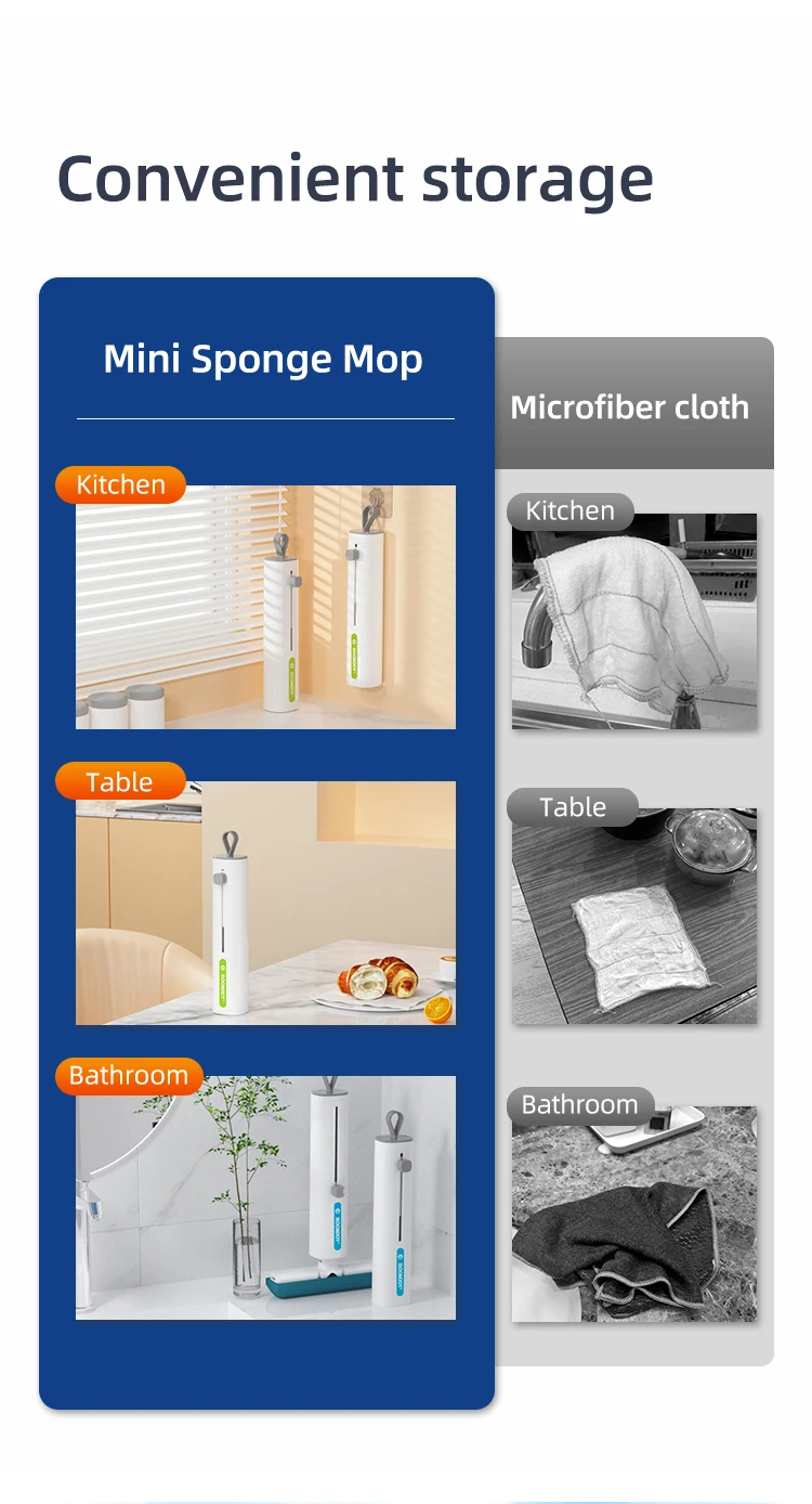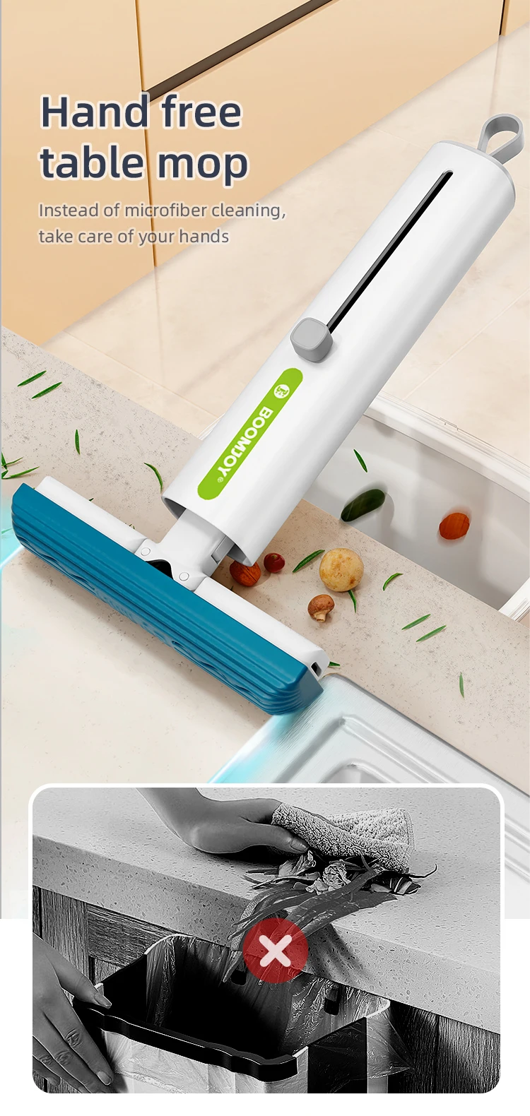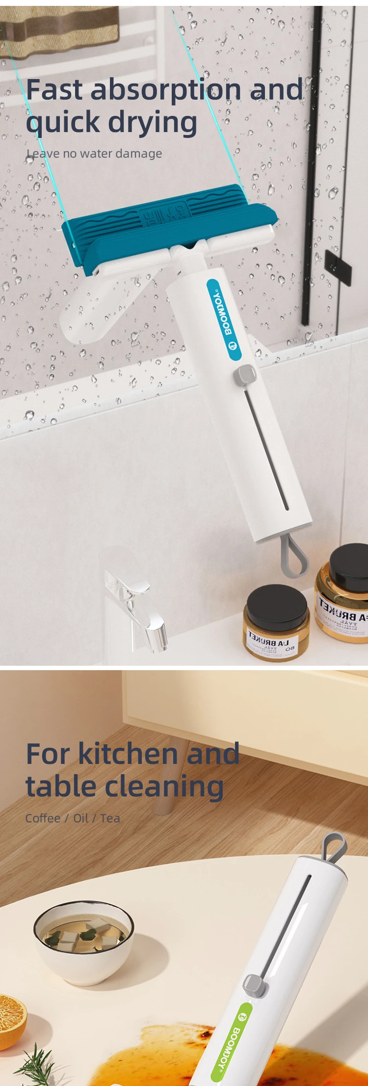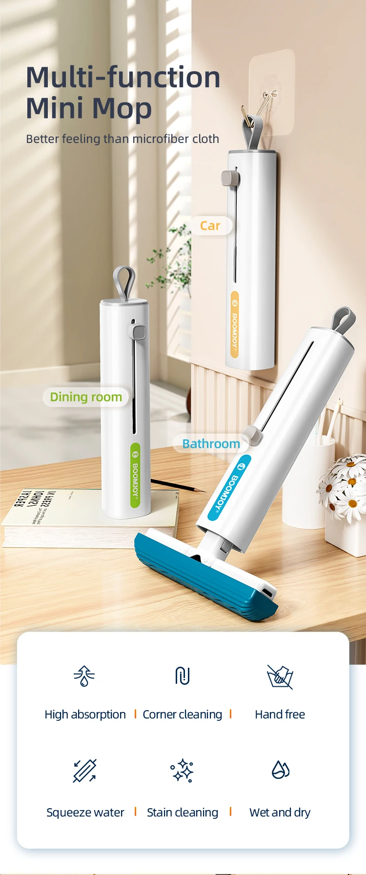 BOOMJOY Portable Self-Squeeze Mini Mop Cleaning Sponge for Kitchen Bathroom Mirror Living Room Desk |