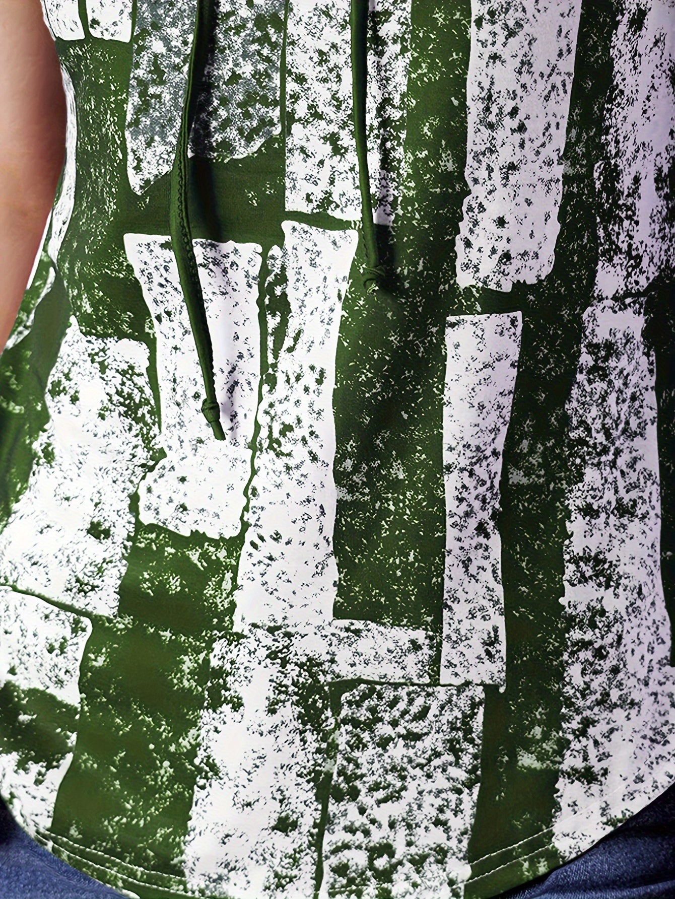 Graphic Print Lace Up V Neck T-shirt, Summer Casual Short Sleeve Top, Women's Clothing