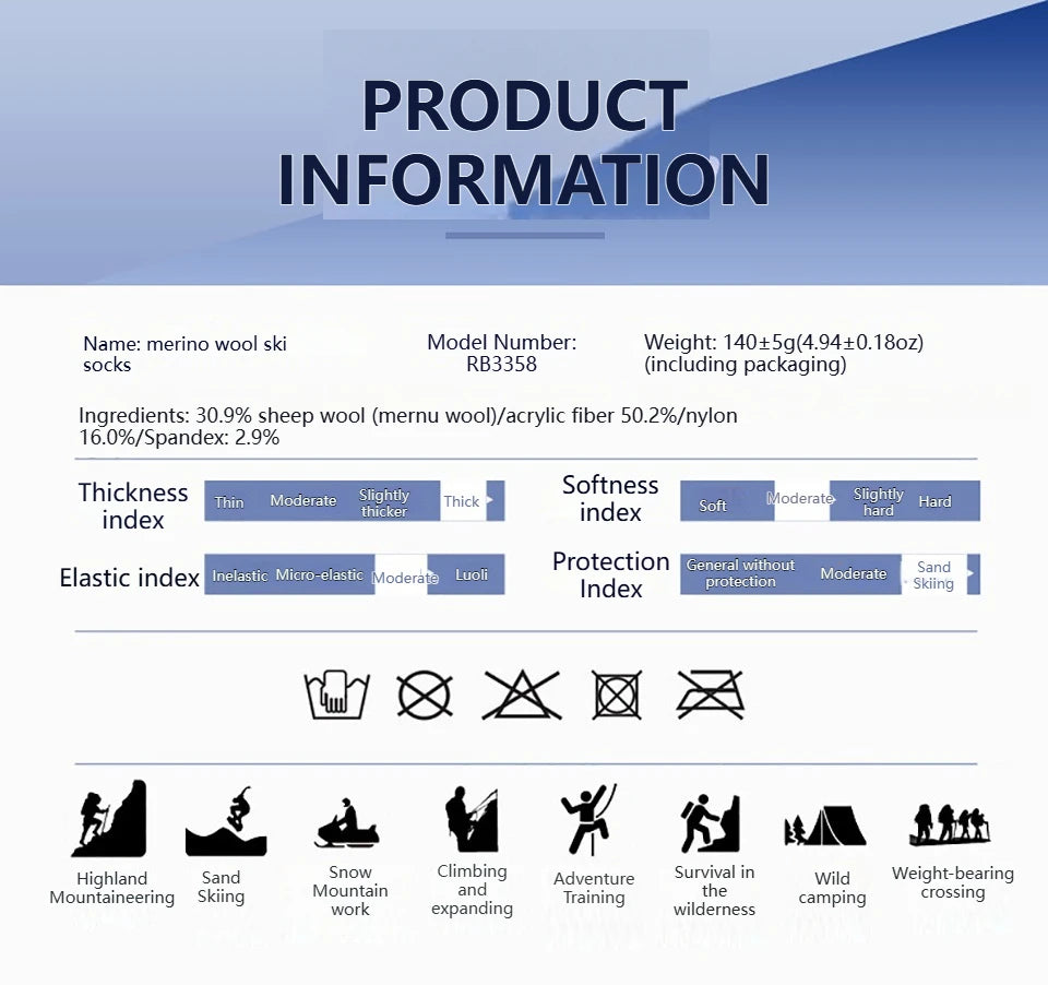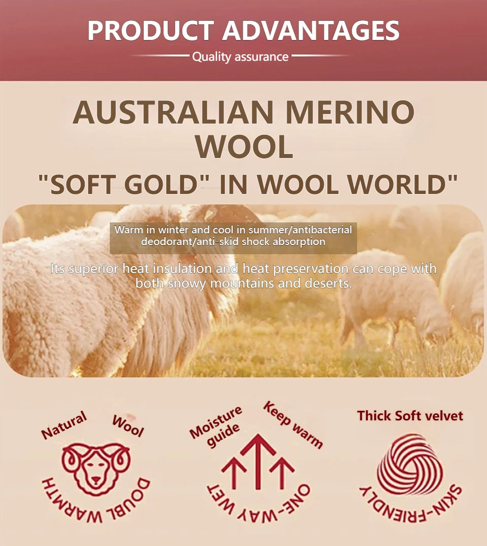 GTUBIKE 1 Pair Merino Wool Winter Men Warm Ski Socks Thicker Sports Snowboard Cycling Soccer Socks High Elastic Thermal Socks