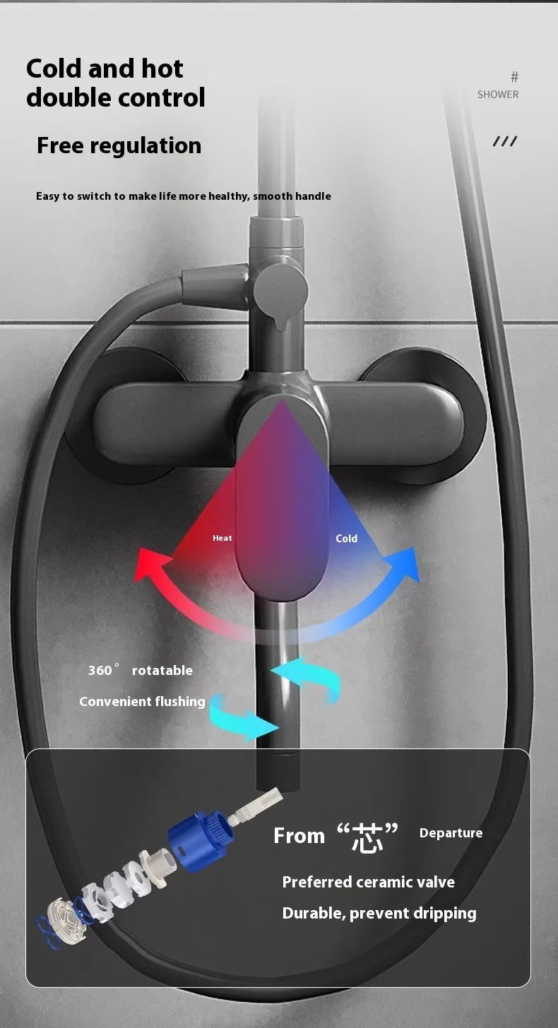 Gun Grey All-Copper Household Bathroom Shower Set Simple Design Ceramic Metered Faucets Chrome Shower Booster