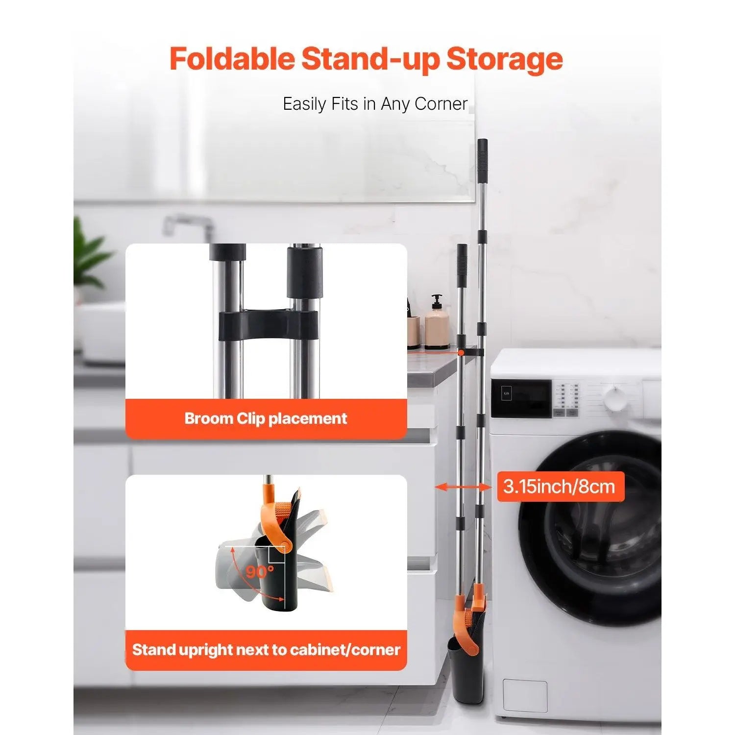 The broom and dustpan can be neatly stored using a secure clip or hung on the wall. The set can be folded 90° to fit into tight corners, occupying just 3.15 inches of space, making it easy to store and keeping your home tidy and organized.