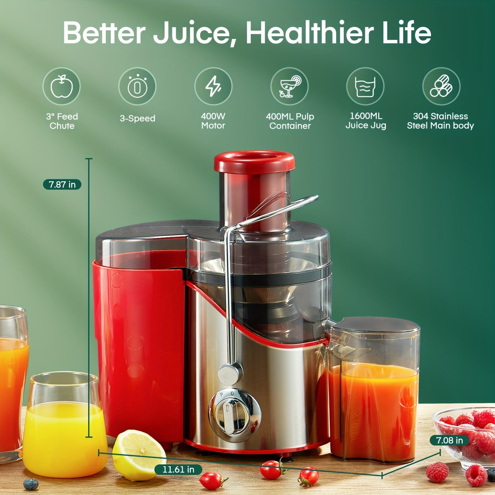Heavy-Duty Electric Juicer Blender - Centrifugal Juicer Machine with Pure Copper Motor, 18000 RPM High-Speed Blending, Wide Mouth (65mm) for Maximum Yield - Stainless Steel Construction, Non-Slip Base - Ideal for Home & Comme
