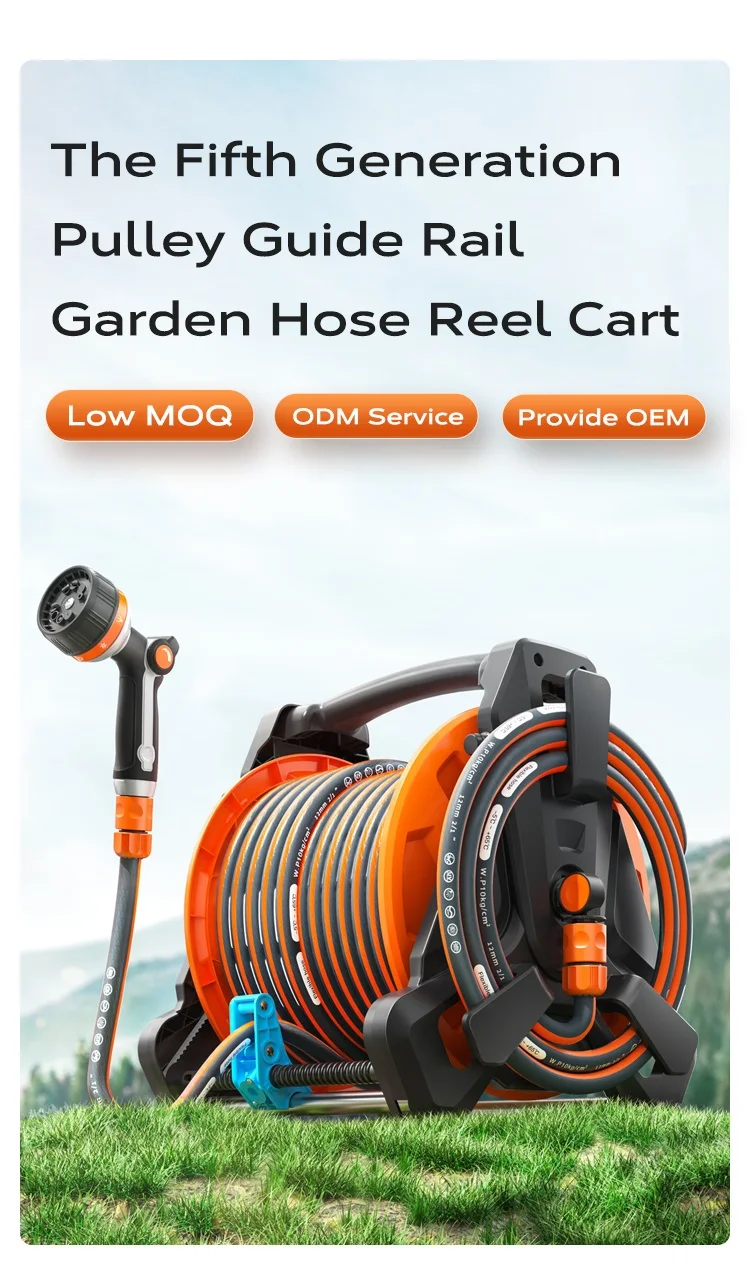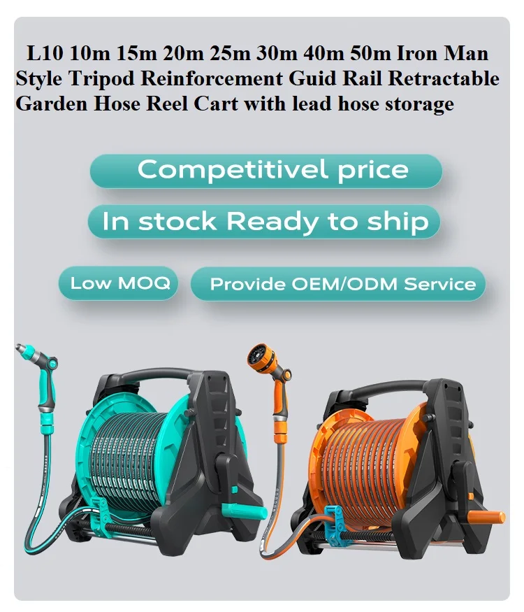 L10 Guid Rail Retractable Garden Hose Reel Cart with lead hose storage |
