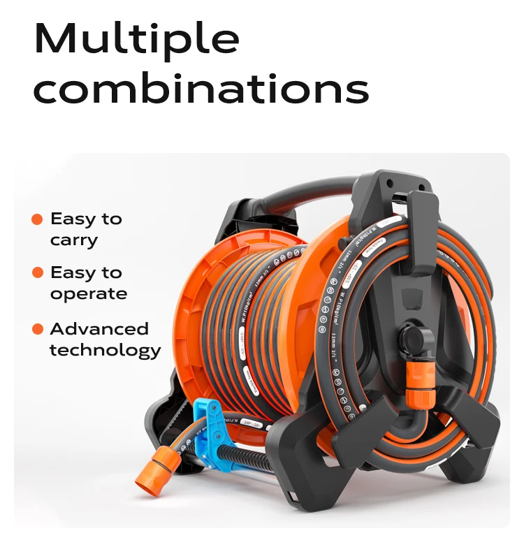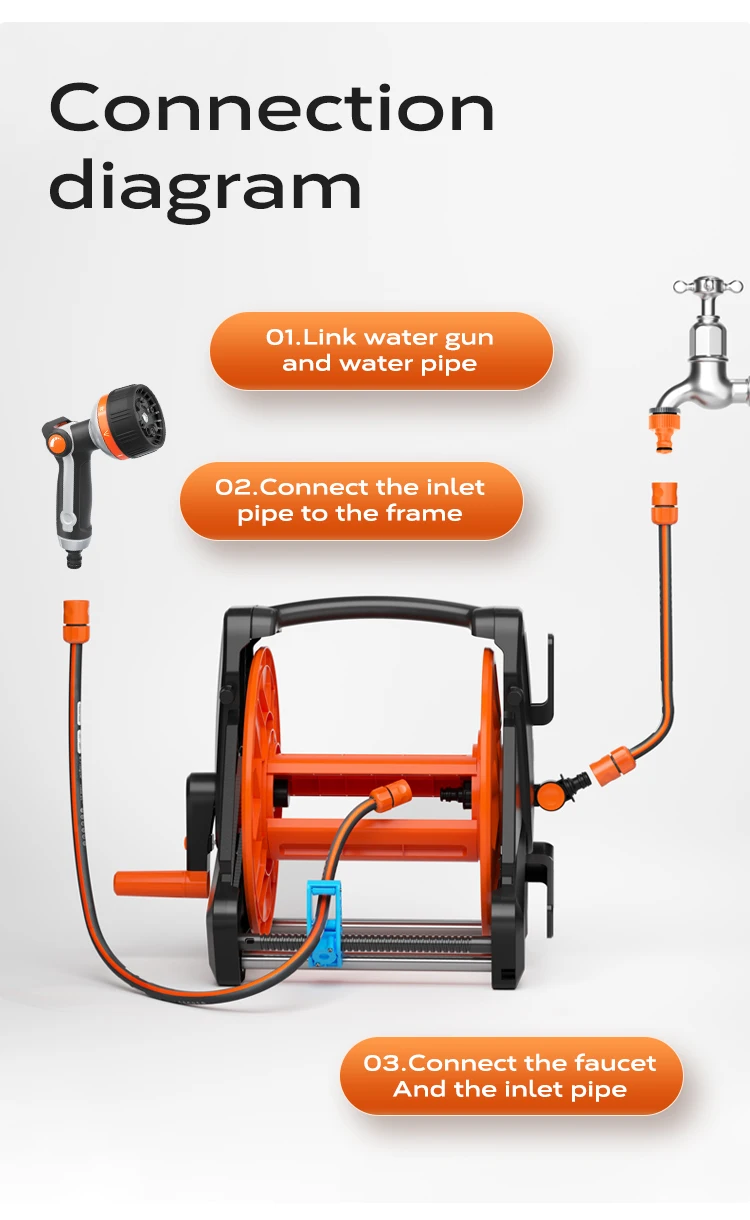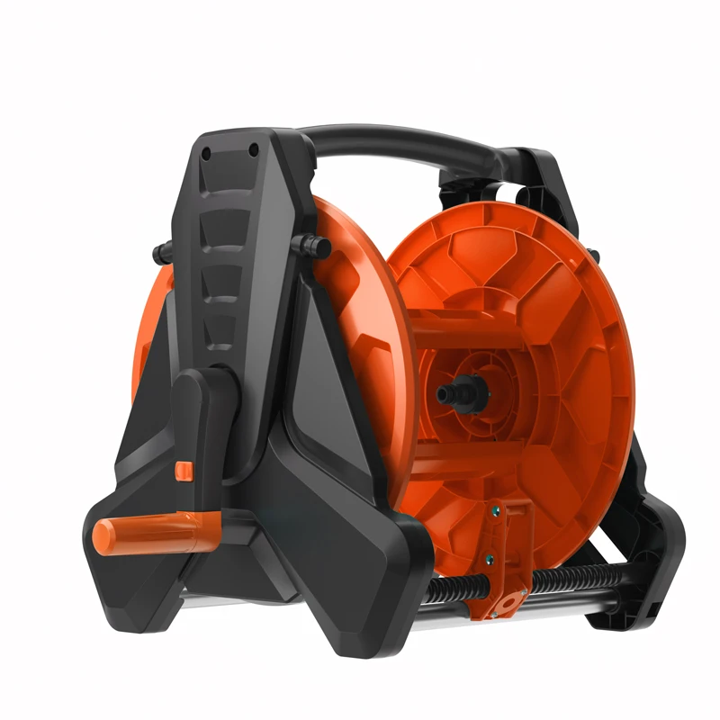 Tangerine L10 10m Iron Man Style Tripod Reinforcement Guid Rail Retractable Garden Hose Reel Cart with lead hose storage |
