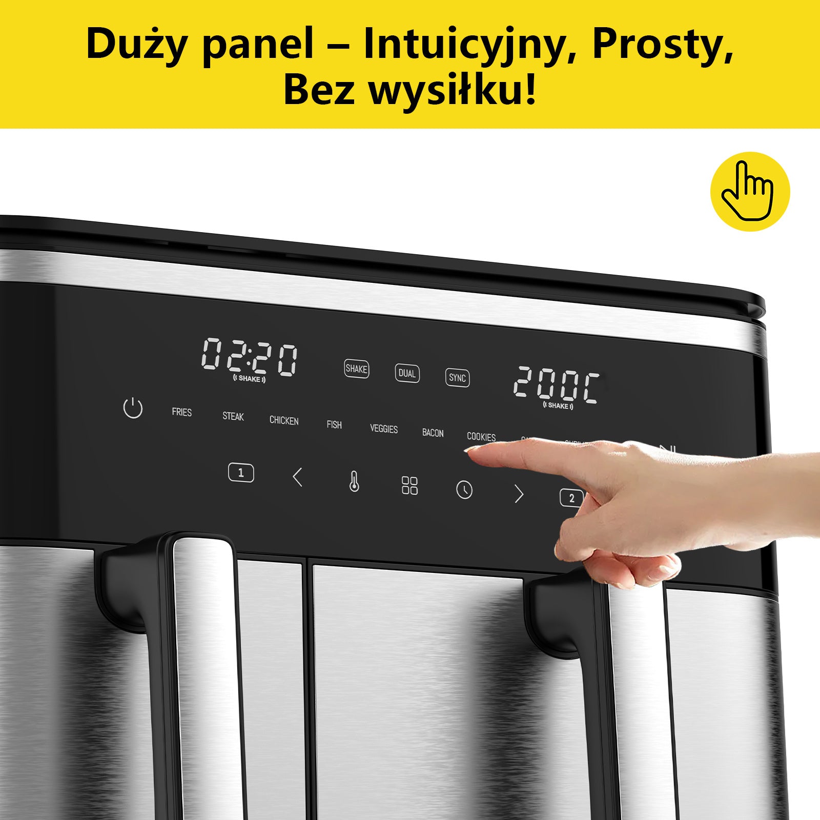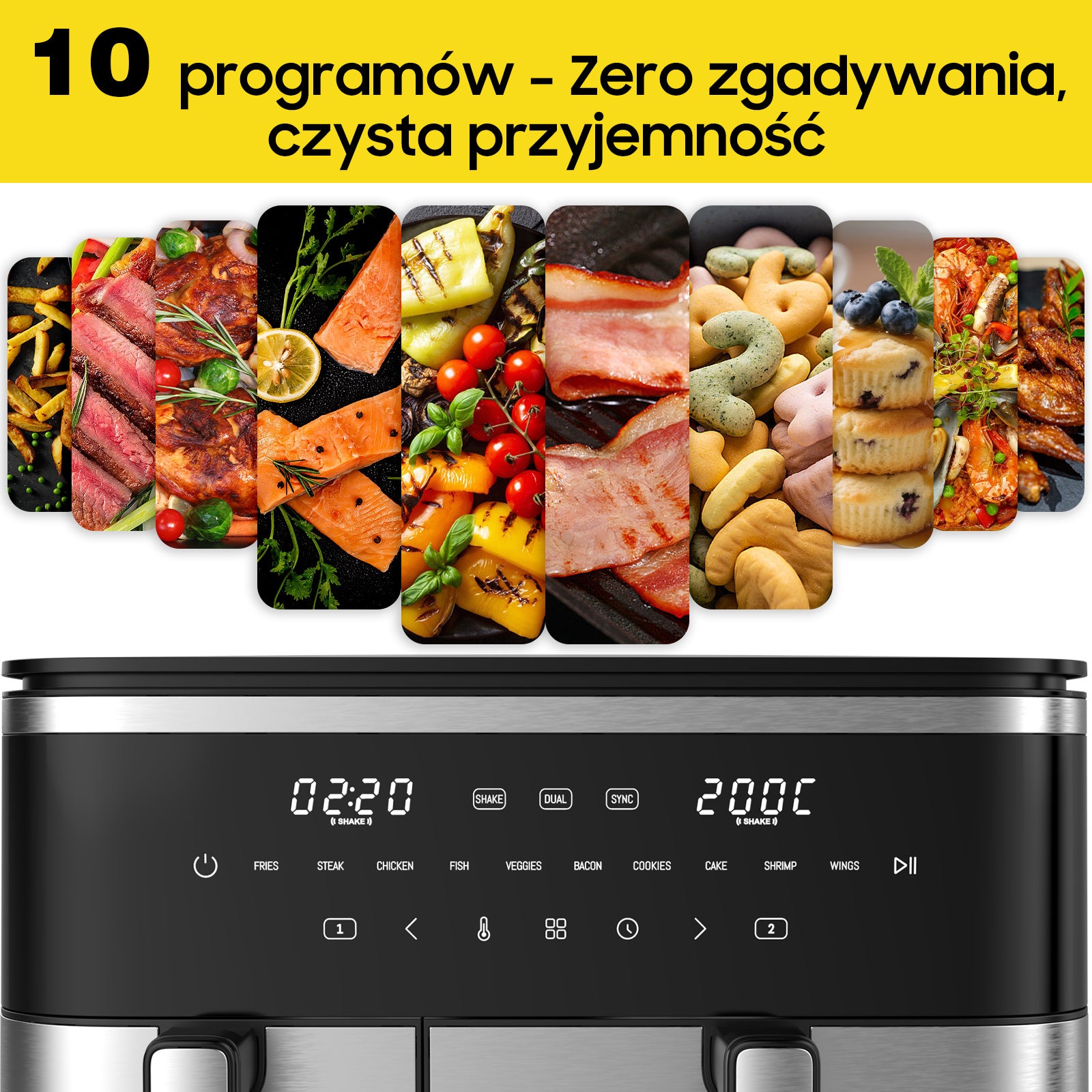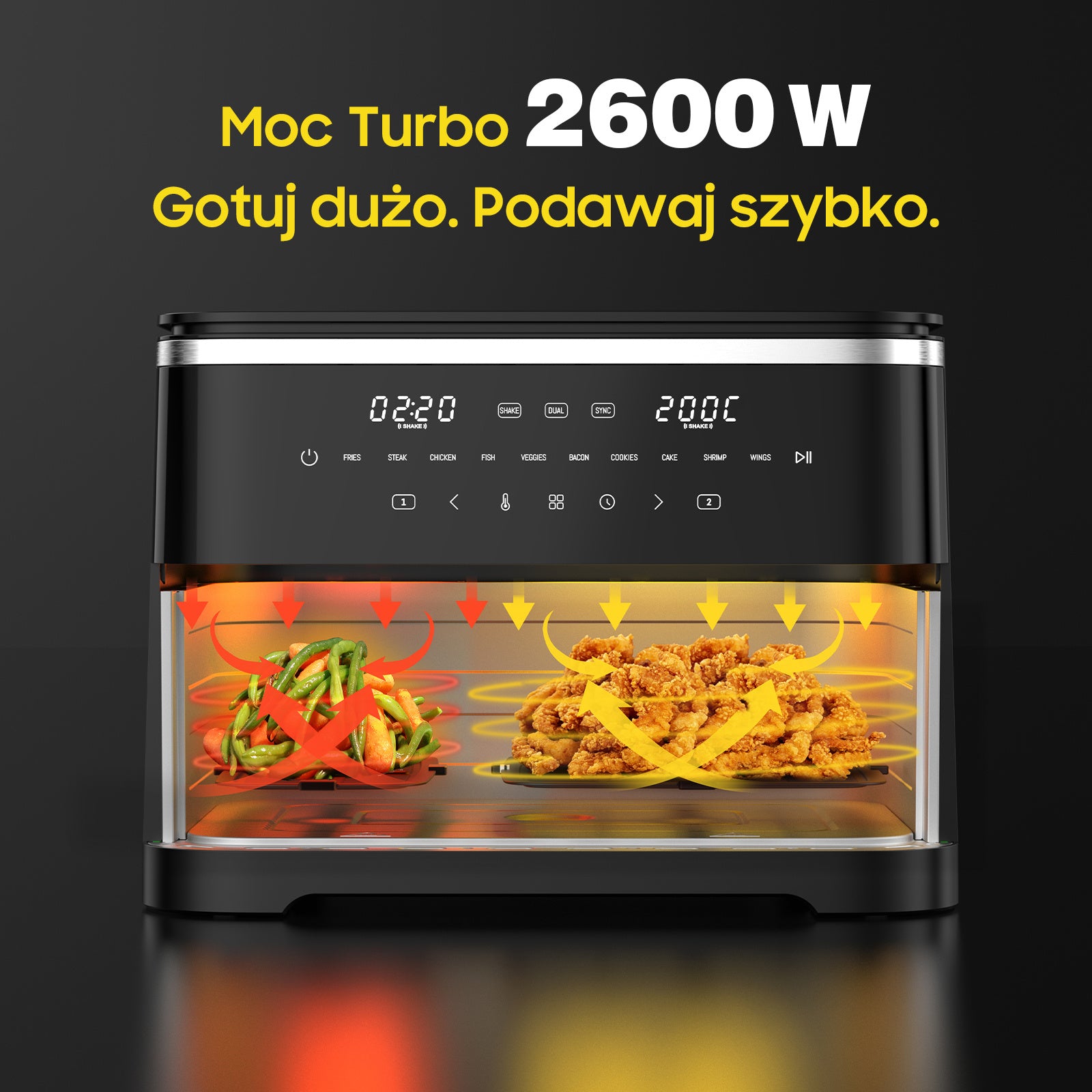 Iceagle XXL Hot Air Fryer, 2600W, 11L Dual-Zone Air Fryer with 2 Independent Chambers, 2-Sized Baskets, 10 Preset Programs, Timer, Digital Control Panel, and Recipe Guide