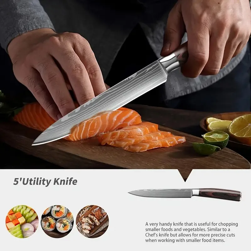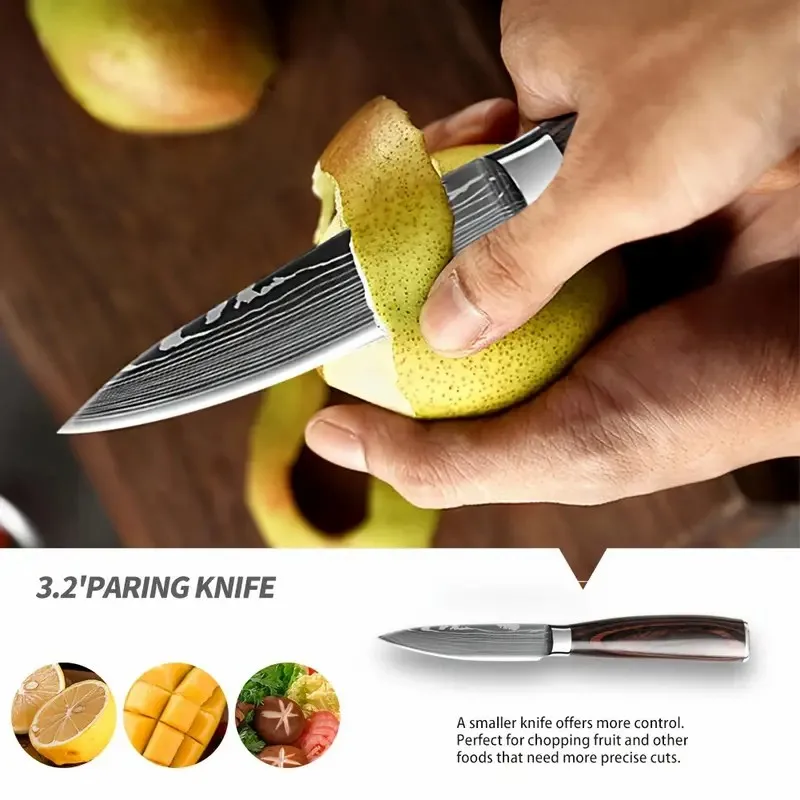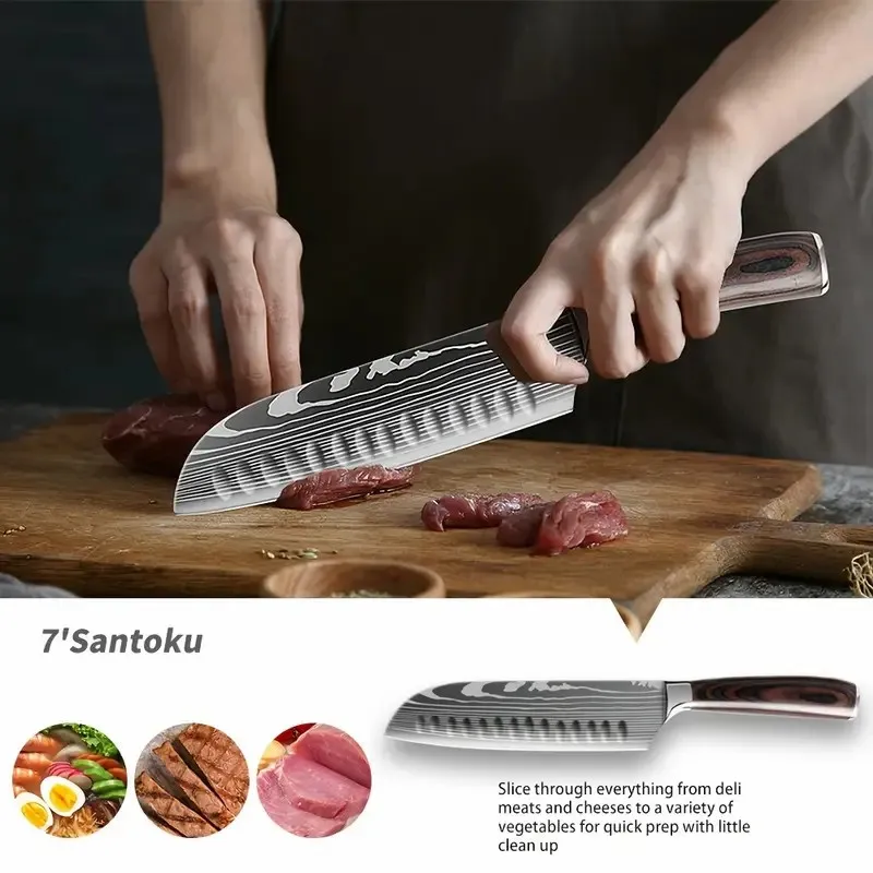 Japanese Stainless Steel Kitchen Knife Set Pakka Wood Handle Japanese Chef Knives Metal Fruit Nakiri Paring Knife Set
