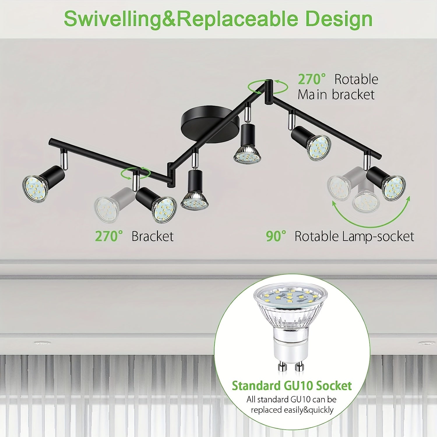 O Kit de Iluminação LED 6 Luzes Contem combina elegância e funcionalidade num design moderno e versátil. Com estrutura em preto e 6 focos direcionáveis, este sistema permite ajustar a iluminação conforme o ambiente, garantindo uma luz eficiente e decorativa.