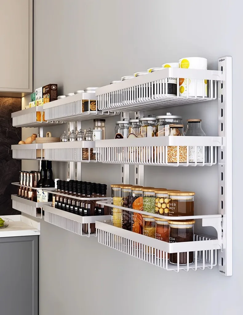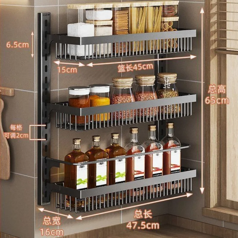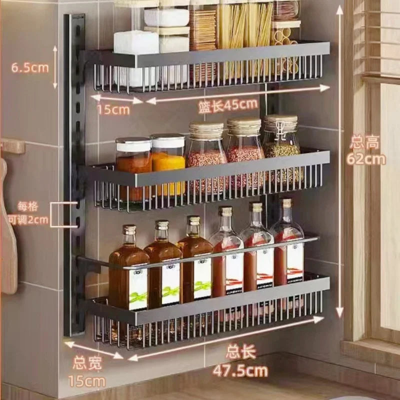 3-layer Kitchen spice rack Organizer Hanging Spice Storage Rack Multi-tier Wall Mounted kitchen container organizer |