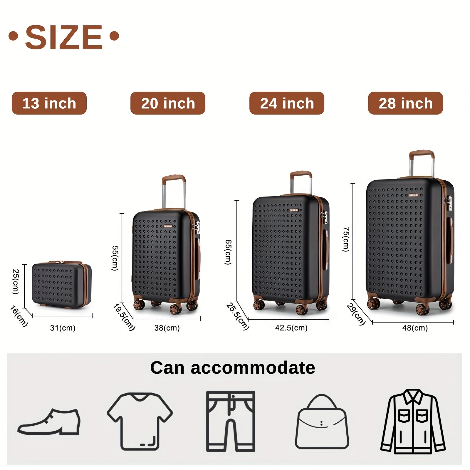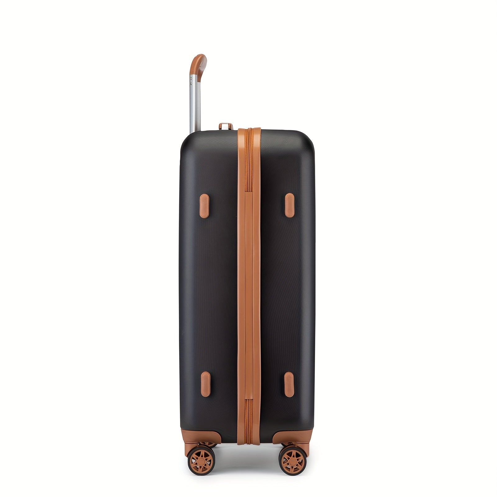 Kono Lightweight Hard-Shell ABS+PC Checked Luggage Suitcase with 360° Spinner Wheels, Built-In TSA Lock & Aluminum Frame - Multi-Size Options, Black & Brown Travel Suitcase with Retractable Handle, Durable Airline- Carry-On