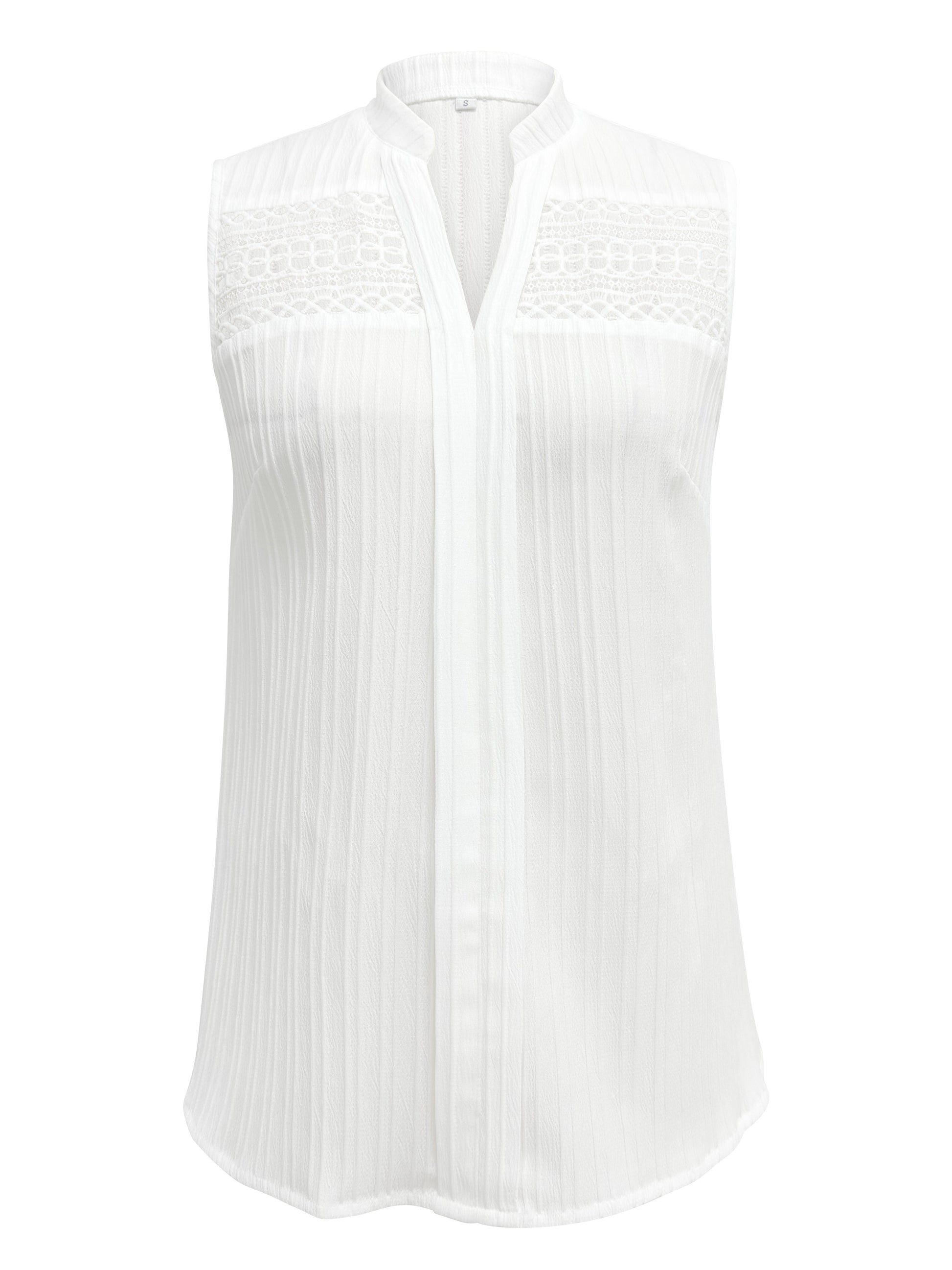 Lace Stitching V-neck Blouse, Elegant Sleeveless Top For Spring & Summer, Women's Clothing