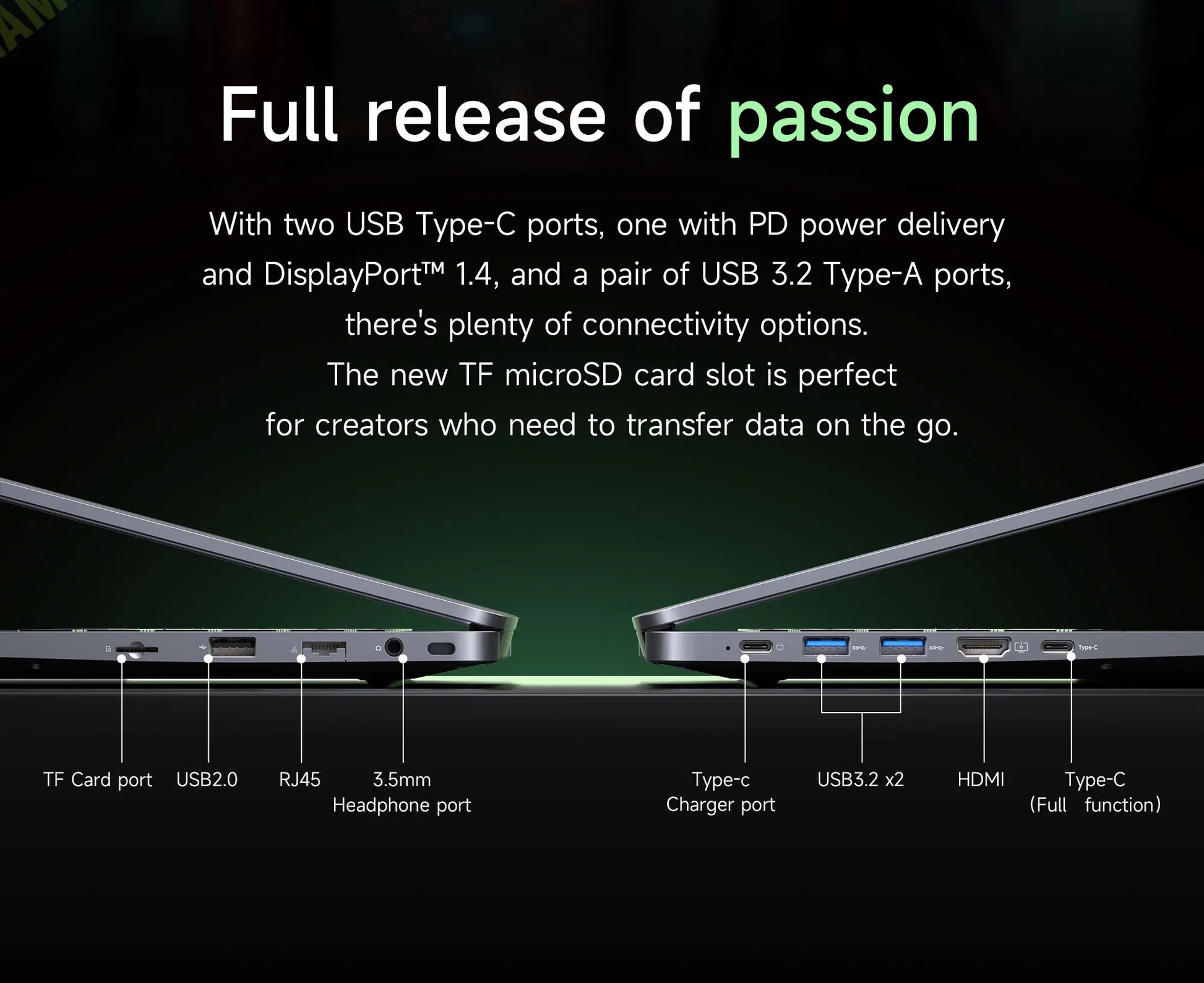 I/O Port: USB3.0*2 USB2.0*1 RJ45*1 TF*1headphone*1 TYPEC*2