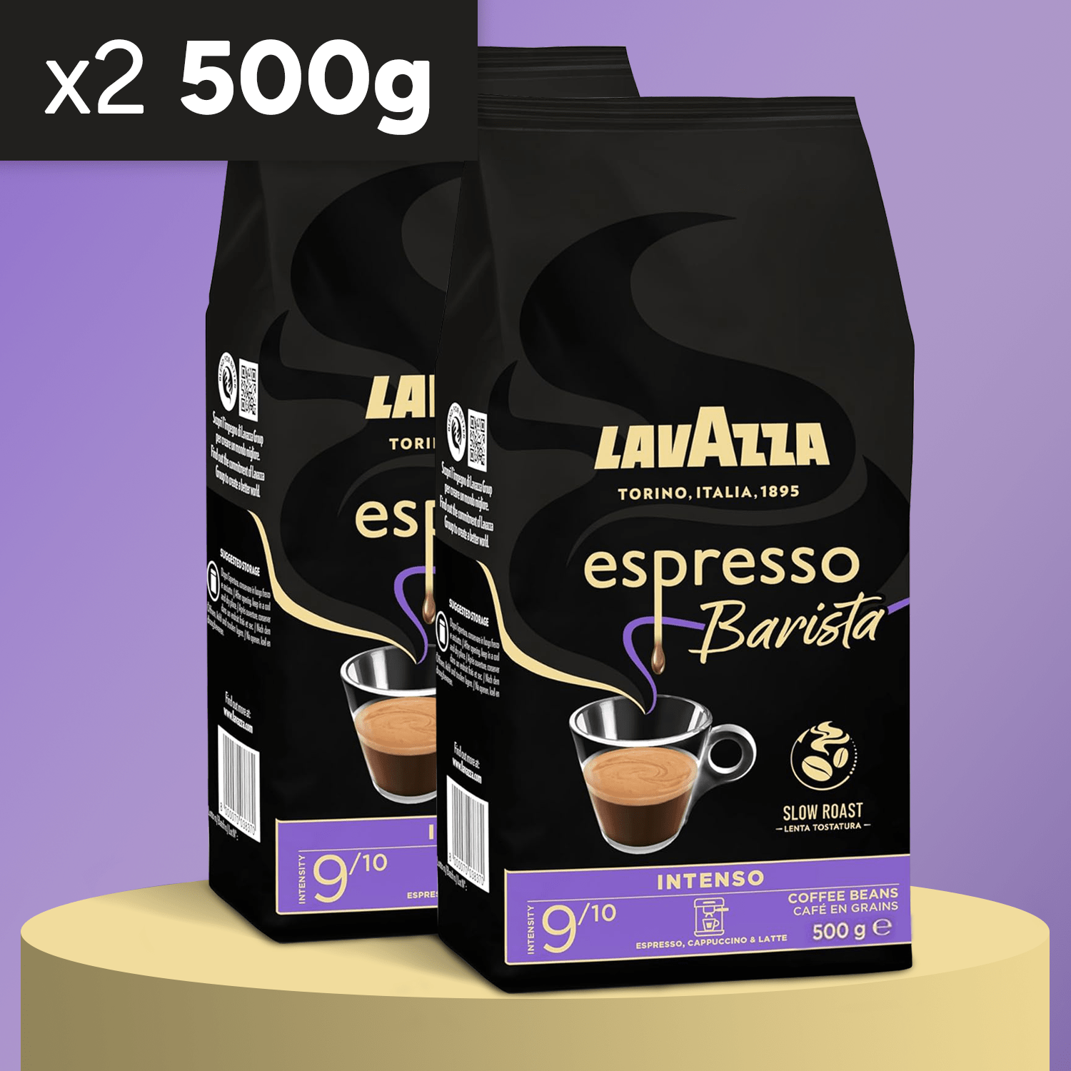 Lavazza Natural Roast Whole Bean Coffee, Barista Intenso Espresso Blend, Arabica and Robusta, with Aromatic Notes of Cocoa and Wood, Intensity 9/10, Medium Roast, 1/2 kg