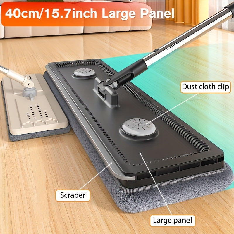Lazy Hands-Free Flat Mop And Bucket Set with 4pcs Mop Pad- Dual-Purpose Dry And Wet Cleaning, Ideal for Bedroom, Kitchen, Living Room, Bathroom - Durable Plastic, for Household And Floor Cleaning, Tile Marble Floor Cleaning M