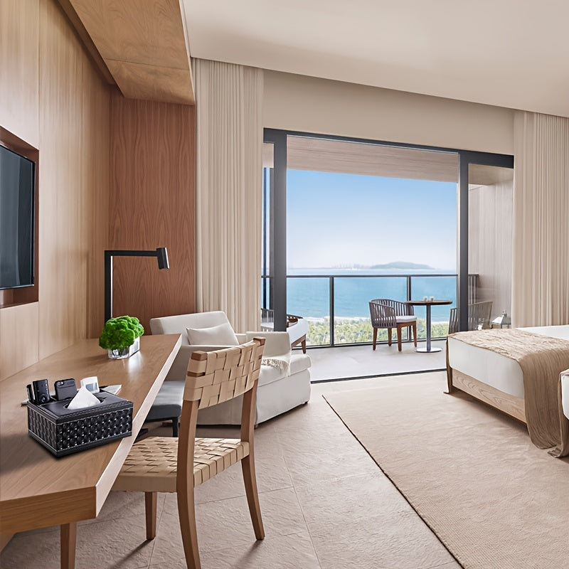 LDQ Multi-Functional Faux Leather Tissue&Storage Box with 4 Compartments Includes Remote Control&Household Napkin Storage, Wipe-Clean in Seconds, Ideal for Living Room, Study&Café Countertops Perfect for Home Supplies Back t
