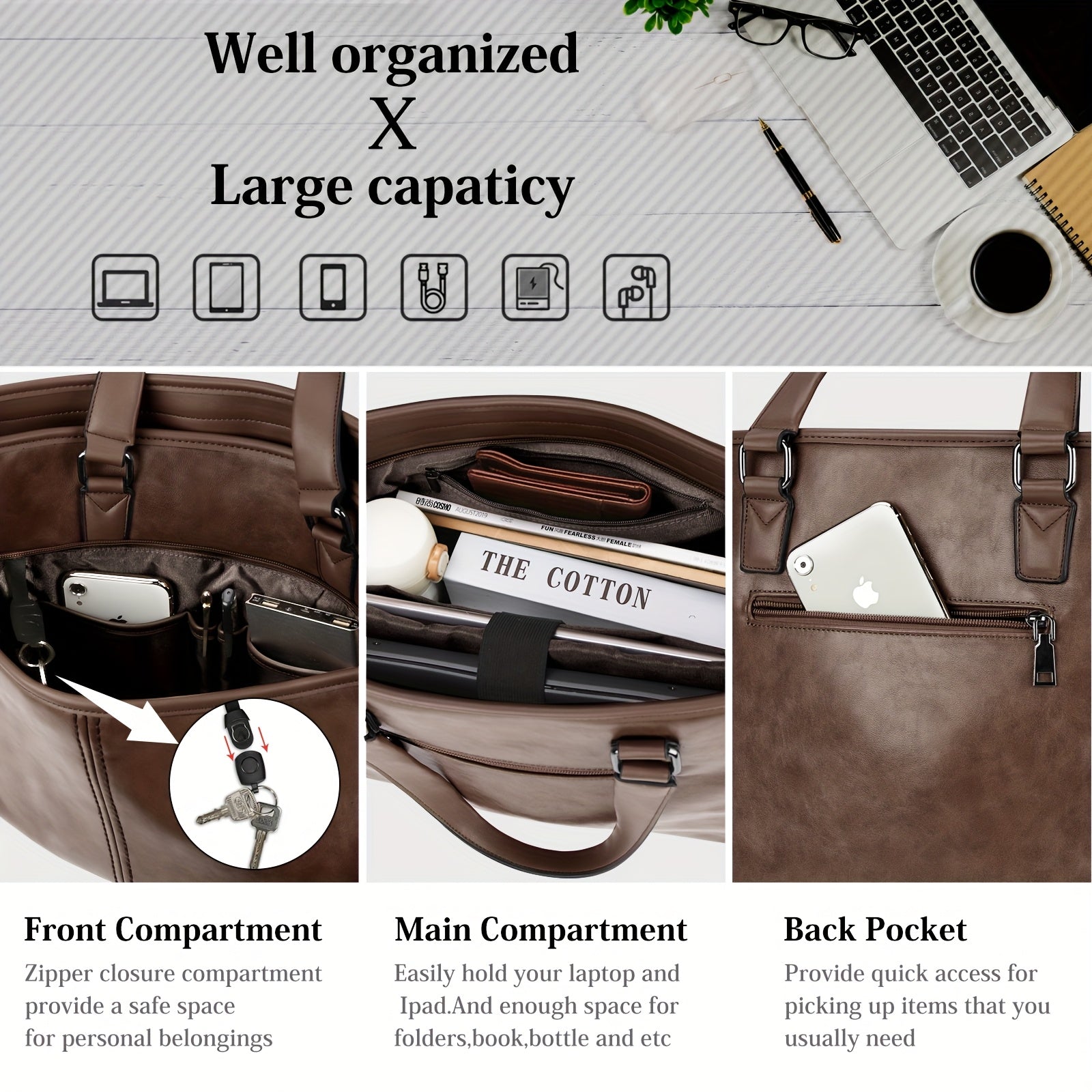 LUBARDY Men'S 15.6-Inch Laptop Briefcase - Lightweight Business Bag with Adjustable Shoulder Strap, Multiple Compartments & Zipper Closure, Coffee Brown for Office, Work, College, Laptop Storage, Professional Look, Durable Zi