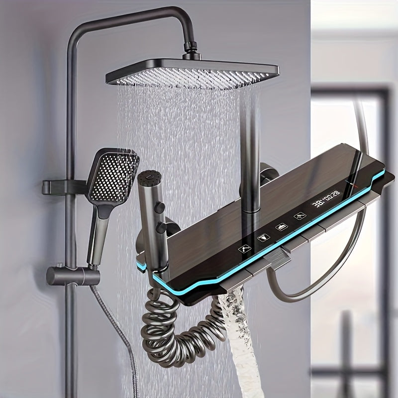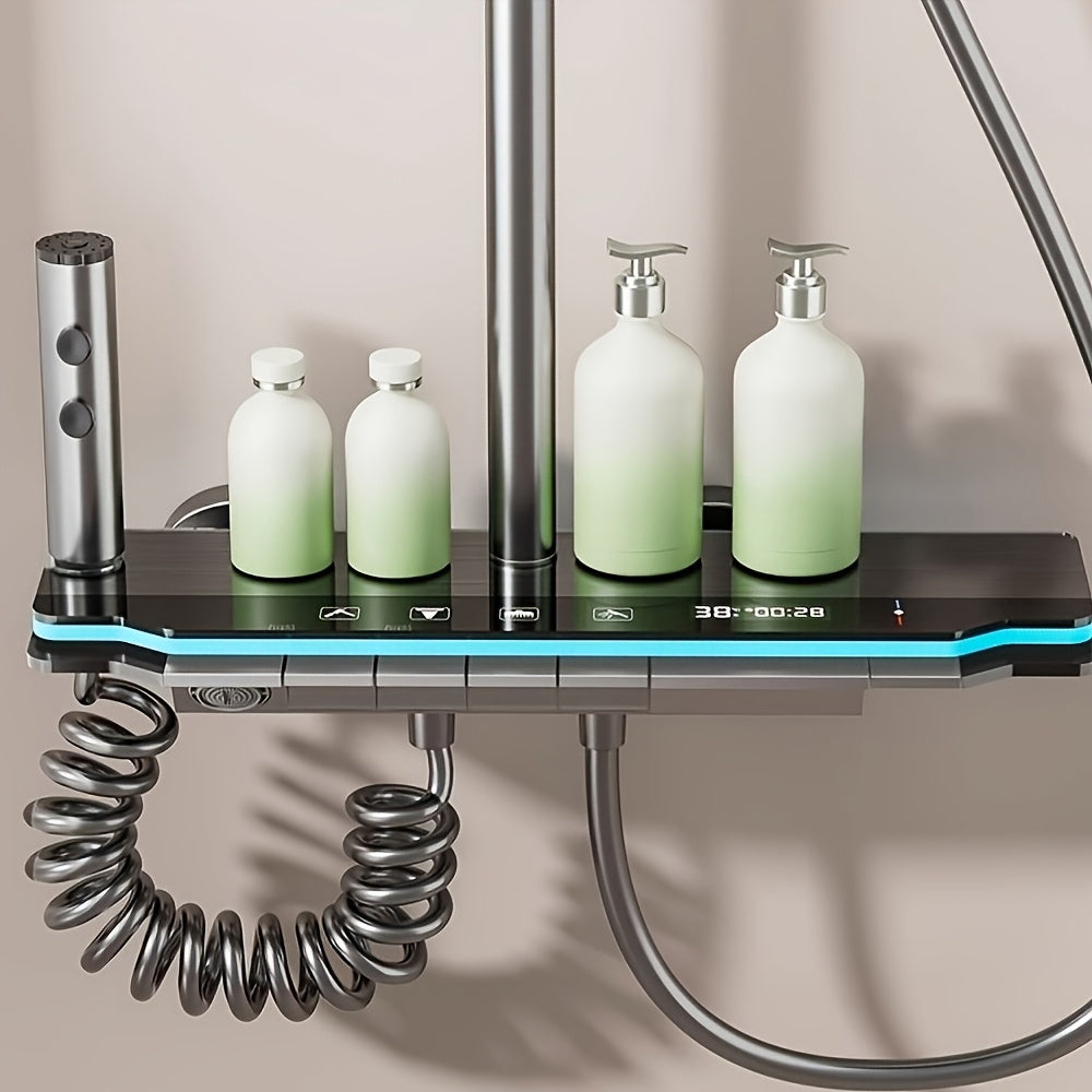 Luxury Gun Gray Shower Head Set, Piano Key Ambient Light, High Pressure Rainfall System, 4-in-1 Bathroom Accessories Kit, Digital Shower Head, Ideal Gift for Home Bathroom Decor, Perfect for Easter and Ramadan